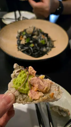 今晚帶朋友去咗銅鑼灣一間頗出名嘅樓上酒吧飲嘢兼食飯,呢間酒吧位置很好找,位於時代廣場後面,酒吧走現代禪風黑色風格,頗有格調。🍴 Ikura Lobster Arancini師傅把龍蝦湯加入車打芝士,再炸成一舊飯團,咬落去感覺外脆內軟,極為香口,鋪在飯團上嘅三文魚籽令整個口感更為豐富。🍴 Tuna Tartare香滑嘅牛油果蓉加埋吞拿魚他他,再配搭埋香脆嘅炸米紙和炸紫菜一齊食,呢個配搭頗新穎,而且勁香口,食到停唔到口。🍴 Crispy Beef Short RibBeef Short Rib係用咗上等嘅牛坑腩,肥瘦適中,焗到外皮微脆,裡面嘅肉質還非常嫩滑,配上廚師特別調配嘅山楂紅酒汁,口感甜甜哋,非常開胃,重配埋綿滑嘅牛油焗薯蓉,口感極為豐富。🍴Drunken Crab Pasta廚師特別用上中式嘅花雕酒、蒜片和橄欖油煮成嘅墨魚意粉,每啖都能食出濃香嘅花雕酒味,另外蟹肉都非常鮮甜,夠晒足料。🍹 Koko Ringo用Gin做酒底,再用羅勒葉、班蘭、青檸調配成嘅cocktail, 上面再加上椰mouse, 清爽之餘又帶出陣陣椰香。🍹 Prohibition 端上時用火烧cocktail上的柑橘,儀式感十足,淡淡嘅伏特加酒配有百香果、番石榴、柑橘、青檸葉,口感極為清爽。…查看更多