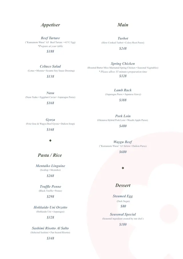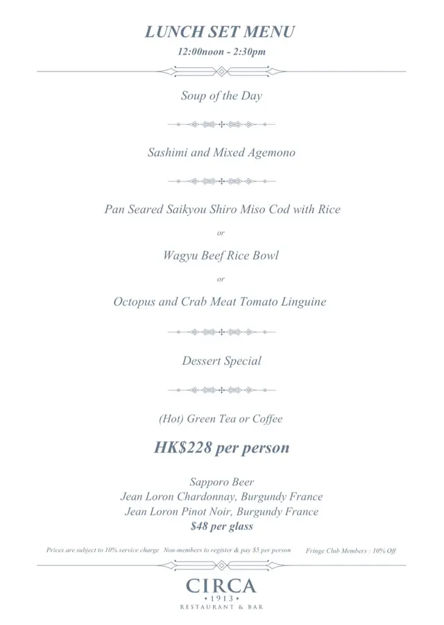 早前和一位長輩於Circa 門前候車,大家好奇Circa 究竟提供什麼菜式,就約定於今天來吃個午餐。一看午餐餐牌,我會說這裡是主要提供日式餐點的地方。午餐包括湯、前菜、主菜、甜品及飲品,其中主菜及飲品均可以選擇。當中令我最深刻印象的為前菜,上菜時用一個方形的盒子,外面舖滿樹葉,面層鋪滿小石頭,同行長輩的第一感覺為: “整式整水!” 而我倒是覺得挺過癮!方形盒子的面層放了剛炸好的炸物,包括釀雞翼、芝士餅等,熱騰騰的香氣飄入鼻腔;而打開蓋子為不同種類的魚生片!魚生片蠻新鮮,只是有某些種類比較多筋,個人不是太喜歡,畢竟食魚生要入口即溶才過癮嘛!主菜我選擇了拖羅茶漬飯。茶漬飯的賣相很好!女孩子看到一定喜歡!服務生替我於碗內注入焙茶,配著攪碎了的拖羅蓉,咸咸香香的,真的不錯!整個午餐最值得一讚是服務生總在對的時間出現,於我們完成一道菜時及時上另一道。中環人總是心急嘛!…查看更多