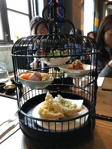 早前和一位長輩於Circa 門前候車,大家好奇Circa 究竟提供什麼菜式,就約定於今天來吃個午餐。一看午餐餐牌,我會說這裡是主要提供日式餐點的地方。午餐包括湯、前菜、主菜、甜品及飲品,其中主菜及飲品均可以選擇。當中令我最深刻印象的為前菜,上菜時用一個方形的盒子,外面舖滿樹葉,面層鋪滿小石頭,同行長輩的第一感覺為: “整式整水!” 而我倒是覺得挺過癮!方形盒子的面層放了剛炸好的炸物,包括釀雞翼、芝士餅等,熱騰騰的香氣飄入鼻腔;而打開蓋子為不同種類的魚生片!魚生片蠻新鮮,只是有某些種類比較多筋,個人不是太喜歡,畢竟食魚生要入口即溶才過癮嘛!主菜我選擇了拖羅茶漬飯。茶漬飯的賣相很好!女孩子看到一定喜歡!服務生替我於碗內注入焙茶,配著攪碎了的拖羅蓉,咸咸香香的,真的不錯!整個午餐最值得一讚是服務生總在對的時間出現,於我們完成一道菜時及時上另一道。中環人總是心急嘛!…查看更多