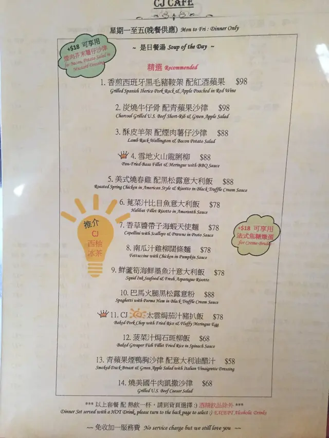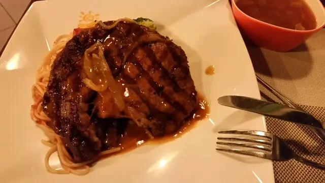 個FD上次話馬鞍山游泳池旁邊有間西餐唔錯所以夜晚去試下,睇睇個餐牌都幾多野食一個人唔知食咩好就叫左個沙津同黑椒西冷5成熟。個沙津D菜同好新鮮 D煙三文魚包到成個花咁非常靚 食落都好好味。西冷扒我叫5成但出黎都有6,7成,不過都OK既 個人覺得唔洗咁熟我都係鐘意食5成拎上枱時仲保有牛的肉汁牛肉軟身亦不會多根,可能我好彩,塊排的脂肪分佈得好平均,所以啖啖都好juice。 不過個意粉就有少少失望 因為個意粉乜味。但個蕃茄同個黑椒汁就好有水準。個芝士炸雞,芝士和雞肉非常夾雞肉嫩滑多汁,真心係好食嘅,芝士非常香口而且經過烤一烤, 肉嫩滑juicy, 皮脆香脆但唔乾,雞翼皮脆個身竟然都可以咁嫩口,好滑身,非常好!芝士味幾特別幾香口,好新鮮配搭。仲份量好多TIM個湯黎到我個人覺得淡左少少,但個包就好鬆軟。洋蔥汁肉眼6成熟, 都幾大塊幾厚身個汁都唔錯意粉都幾好味。如果下次黎我會食埋另外果幾種炸雞。 …查看更多