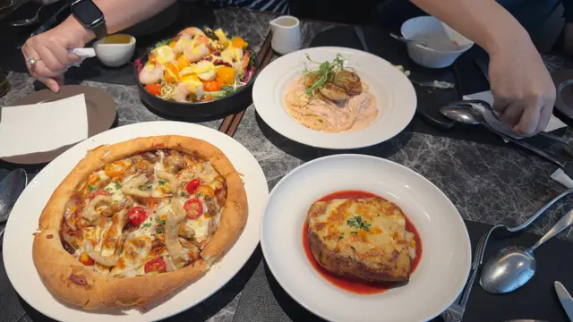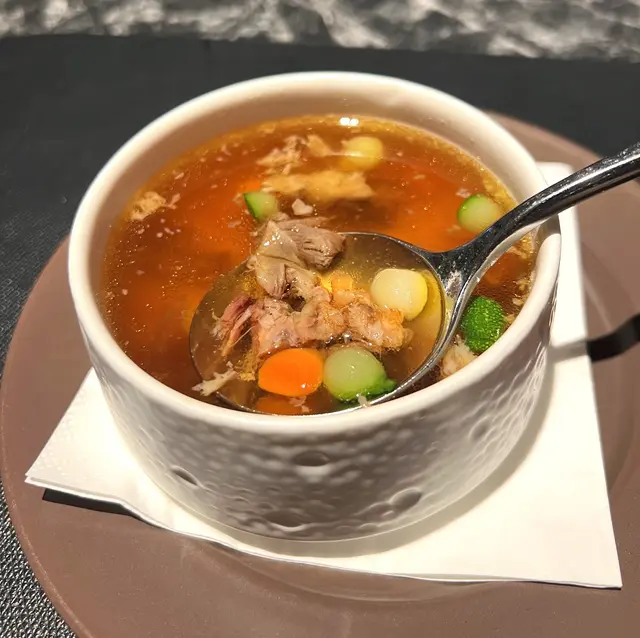 今次約了朋友去觀塘食西餐,朋友帶咗我去呢間西餐廳,一入去有啲似去咗酒店嘅感覺,餐廳環境復古優雅,裝潢走木系柔和風格,幾有情調,好有氣氛,餐廳亦無限時,店員不會有任何催趕,最適合來Chill下~🥂😌👍🏻🥘Set Dinner Menu這個Dinner Menu好豐富,可以自選🥗3款前菜、主菜、餐湯、🍰甜品及追加飲品,我們選了以下的菜式:每枱會送一籃自製麵包,大家可添加意大利醋搭配吃~🍲是日餐湯 - 🦀墨西哥甜粟米蟹肉周打湯甜甜的粟米粒,加上大量蟹肉絲,再帶剛墨西哥風味,味道甜甜地又微辣~👍🏻🍲是日餐湯 - 🐮古法牛尾濃湯湯入面有很多牛肉碎,真材實料,牛肉味超級香濃,推薦!😋前菜拼盤:🐷巴馬火腿伴蜜瓜:哈密瓜的甜味中和了巴馬火腿的鹹味,非常夾!🐟煙三文魚蜆肉卷:煙三文魚包著細滑的牛油果醬,混合了新鮮的蜆肉碎,口感豐富!😋👍🏻🐮生牛肉他他多士和牛牛肉他他鮮嫩滑溜,肉質細膩,沒有筋肉,用上簡單的調味,突顯肉的天然鮮甜,灑上碎葱,放在香脆的多士上,非常開胃!😎🦆鵝肝燉蛋 (+$18)燉蛋上面放了一塊煎香了的鵝肝,外酥內嫩!另外,鵝肝的油脂與燉蛋融合,非常香鵝肝味,口感更為滑嫩creamy,入口即化!🤤👍🏻🦆香煎法國鴨肝 (60g) (+$28)鴨肝外表金黃酥脆,內部保持柔嫩的口感,搭配香脆的多士,減低油膩感!🤤👍🏻🦪烤原隻帶子 (+$28)香煎過的帶子大大粒又鮮甜,配上香脆的多士,口感豐富!🐷西班牙燒乳豬 伴德式薯仔沙津及醃椰菜 ($368)來到這裏一定要試試他們的招牌菜,上枱時熱辣辣,乳豬皮烤到很薄,超級香脆,肉質非常嫩滑,搭配上酸酸,甜甜的醃椰菜手工醃菜、薯仔沙律及沙律菜,口感豐富,一解油膩感,更加滋味!😍😎👍🏻🐮炭燒澳洲和牛肉眼扒 ($568)上枱時的炭燒味香氣撲鼻,和牛肉我們叫咗五成熟,肉質外焦內嫩,內裏牛肉呈粉嫩的顏色,牛味濃郁又帶點肉汁😍,口感軟腍,旁邊還配上香滑的薯蓉及翠玉瓜,令味道更昇華!😌👍🏻🫕法式焦糖燉蛋經典的法式甜點,表面是用火槍將表面的糖燒製成的焦糖,燉蛋入口順滑creamy,口感豐富且層次分明!🤤🌈續紛世界梳乎厘班戟🥞 (+$68)梳乎厘班戟加了大量奶醬、焦糖爆谷及彩色碎糖,梳乎厘班戟口感蓬鬆輕盈,但奶醬比較甜,爆谷不夠脆,幸好伴碟有士多啤梨和藍莓,中和了一些甜味~🍹Mango Blossom (+$48)用上橙汁、青檸汁、芒果糖漿等調配,味道甜甜酸酸,清新又解渴!😆🍹Dreamy Rose (+$58)用上氈洒、桃及熱情果茶洛神、玫瑰花糖漿調配,Cocktail上面有大量玫瑰花瓣,甜甜地,好清新,仲要好靚!😍 女士們一定好鍾意!🤩I…查看更多