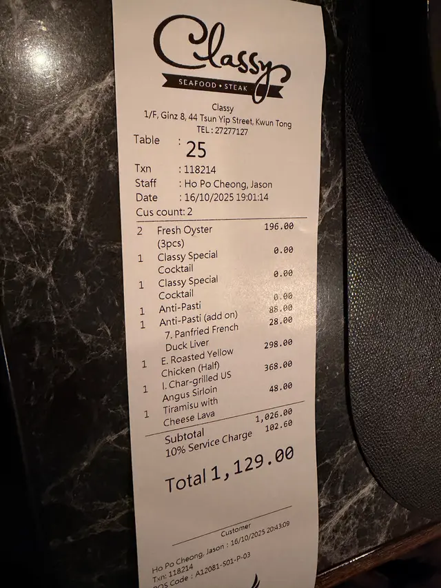 Classy - Seafood & Steak (觀塘) 網上訂座享特別優惠兼賺Rice Dollars 網址: https://s.openrice.com/QrbS0RN4C00 地址: 香港觀塘駿業街44號銀八1樓 電話: +852 27277127