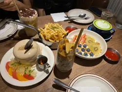 這次的用餐體驗十分愉快,四道菜式讓我感受到不同的美味。首先是肉醬意粉,麵條煮得恰到好處,搭配濃郁的肉醬,讓每一口都充滿了香氣與滋味。肉醬的調味恰到好處,讓人意猶未盡。接下來是鹹蛋黃薯條,外脆內軟,鹹蛋黃的香氣與薯條的口感完美結合。每一口都帶來濃郁的風味,簡直是一道無法抗拒的小食。明太子忌廉燉飯則是另一道亮點,米粒吸收了濃厚的忌廉與明太子的鮮味,口感滑順,非常滿足。每一口都讓人覺得幸福,不會有油膩感。最後,甜品隨便一個都好吃,無論是蛋糕還是布丁,都是精緻又美味的選擇,為整頓餐點畫上完美的句號。總的來說,這次的用餐不僅美味,還讓我感受到滿滿的用心,值得再次光顧!啊!唯一的缺點是等候時間較長,要提早拿籌