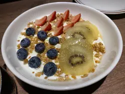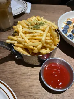 個乳酪加咗麥皮、藍莓、士多啤梨、奇異果,為乳酪帶來一種自然水果既甜味。炸薯條好新鮮好大兜,外脆內軟,點茄汁真係好好味,伯爵茶梳乎厘好香伯爵茶味,梳乎厘好新鮮,非常之有層次感及蛋香。Honeycomb coffee既焦糖浸左落啲coffee度會混為一體,甜度剛好,coffee好香好好味。