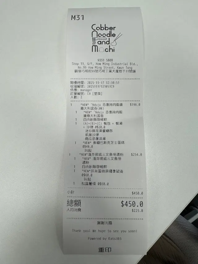 Cobber Noodle and Mochi (觀塘) 網址: https://s.openrice.com/QrbS0UPqD00 地址: 香港觀塘巧明街99號地下11號舖 電話: +852 93315808
