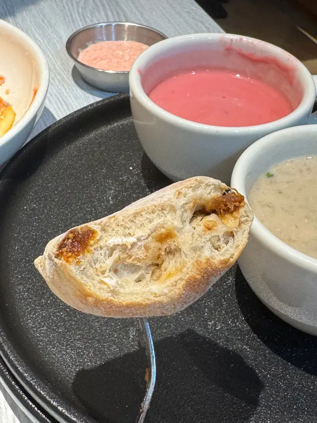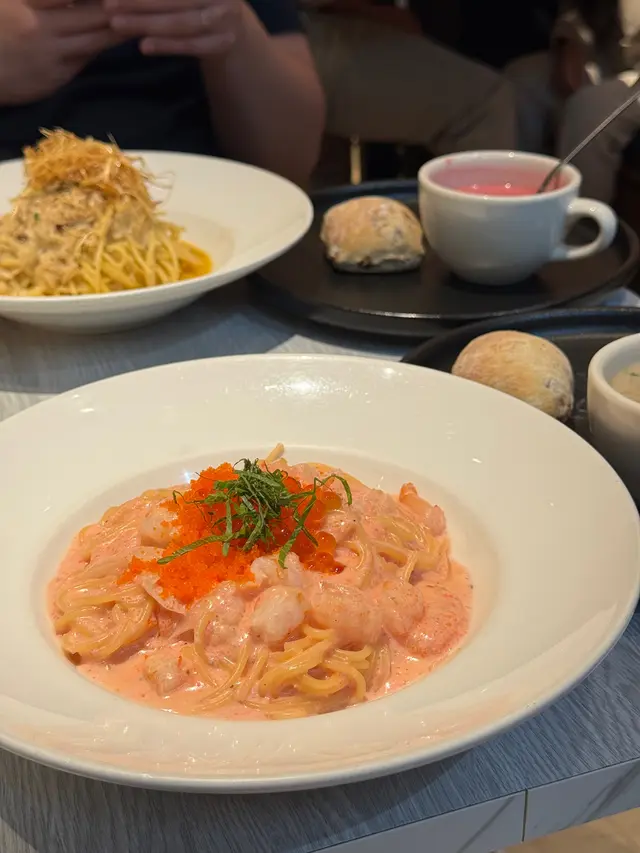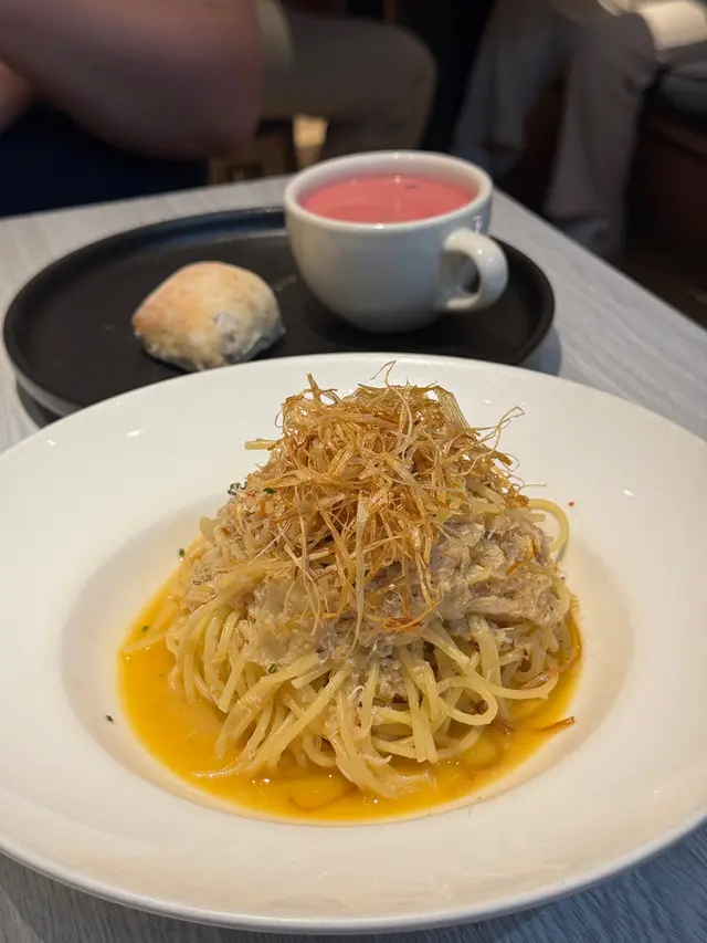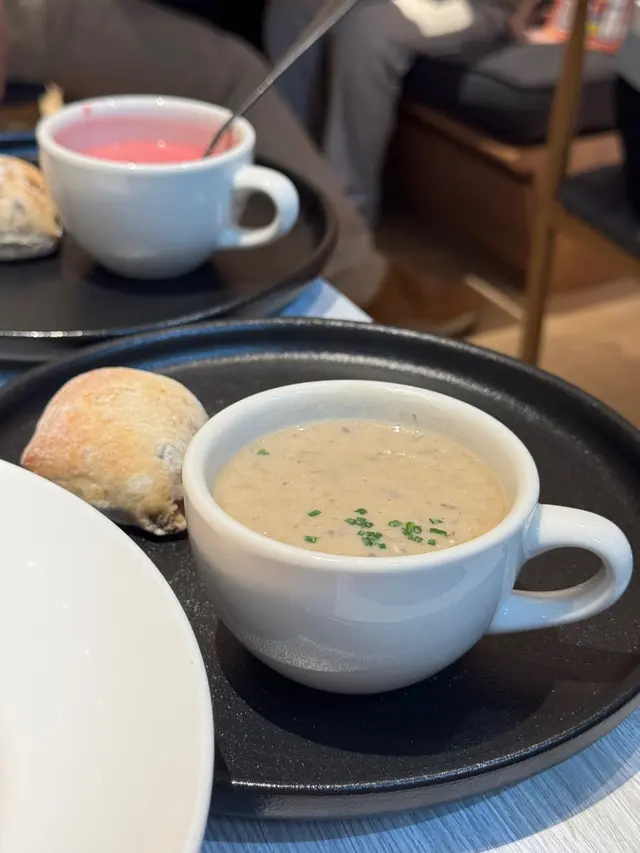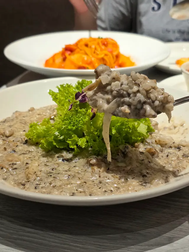 今晚約了朋友到觀塘這間人氣Cafe享用晚餐!餐廳環境十分休閒舒適,文青風味!仲有滿滿的書卷味!令人非常舒適!非常喜歡這間餐廳提供無限暢飲,有不同款式的熱茶,還有五款餐廳獨特的梳打及凍飲!每一款都各具特色,有梳打等等,自助飲用!無限暢飲,非常出色!我很喜歡蘋果微碳酸,蘋果味清新幽香!朋友最愛夏日夏藍特調~藍色的柑橘梳打,味道香濃又清涼解渴!點上主食後,還可以加配上湯、沙律和餐包,有不同款式的組合自行配搭!我們三款都加配料,$20有齊湯、沙律和餐包,相當抵吃!我們點選了松露湯,濃濃松露香味非常Creamy!沙律菜清新爽脆,還配上了脆卜卜的麵包粒!沙律都做得非常出色!另外麵包是無花果蜜糖包,非常特別,吃起來有滿滿的無花果果乾,帶有甜甜的果香!黑松露薯條,非常豐盛,而且份量足!薯條炸得香脆可口,還有滿滿的松露醬汁淋上薯條面上,而且還有一兜松露醬汁!所以不用害怕,吃到最後沒有醬汁!非常抵食,值得推薦!黑松露忌廉蘑菇雞肉燉飯,非常濃郁惹味!滿滿的黑松露香氣配上了雜菌,還有口感滿滿的雞肉!整個配搭相當惹味,每一啖燉飯都會吃到濃郁的香氣以及滿滿的食材!相當飽肚及滿足。蔥蒜香蟹肉炒意粉,賣相精緻,滿滿香口的蔥蒜絲鋪在意粉面上,還有無數的蟹肉!把意粉拌勻,每一啖都吃到濃濃的蟹肉和惹味的蔥蒜絲!意粉份量多,相當抵吃!這間餐廳的甜品也非常出色,我們加配了麻糬雪糕!一款是玄米茶雪糕,另一款是朱古力味雪糕!由於臨近萬聖節,麻糬也換上了新設計,扮成了可愛的幽靈!相當鬼馬吸引!麻糬皮吃起來非常煙靭,口感十足!雪糕味道香濃,配上雪糕來吃又冰涼又煙靭!值得推介!…Read More