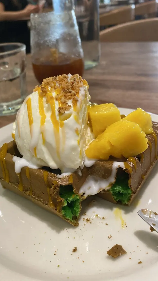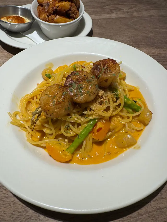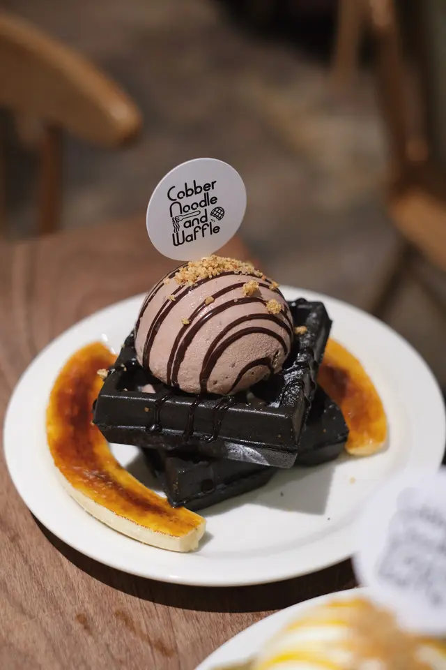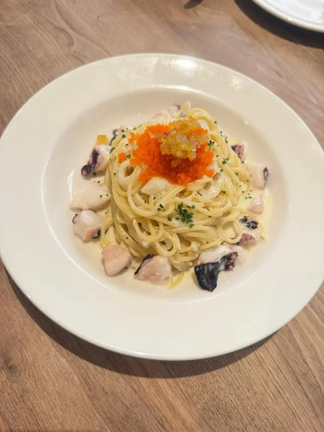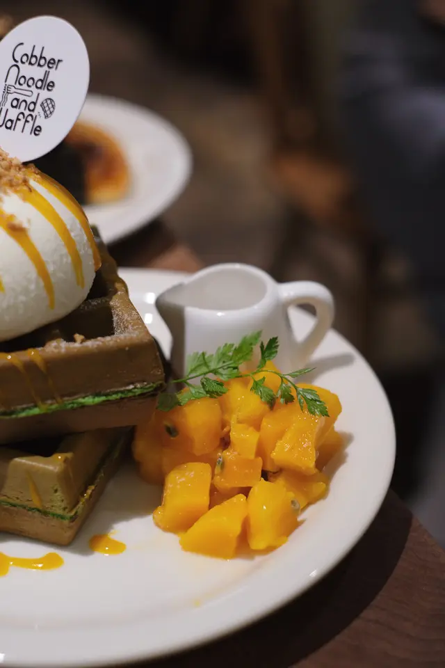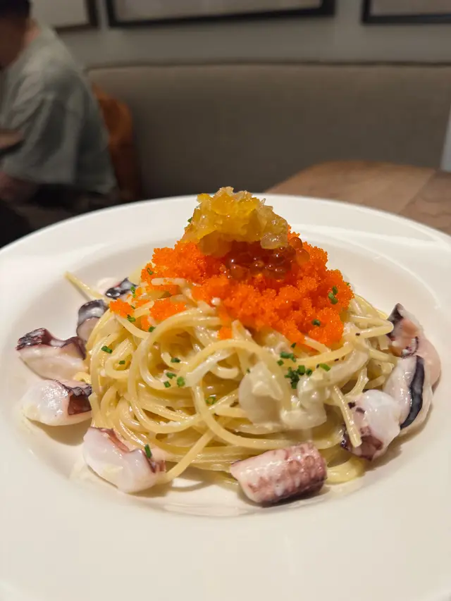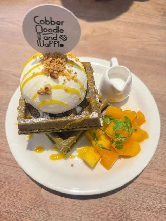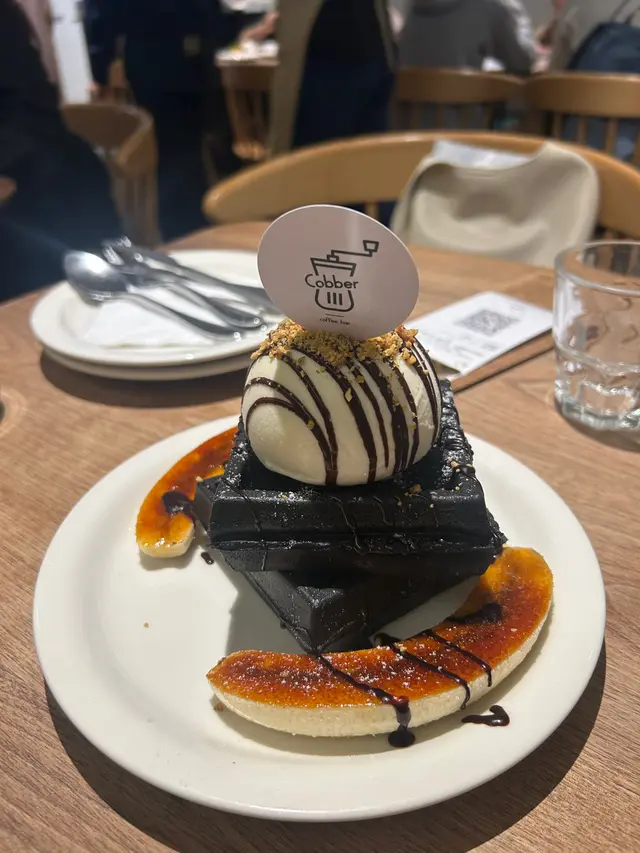 估唔到係觀塘有間樓上鋪不論主食👉🏻小食👉🏻甜品👉🏻飲品都好有質素👍😋原來前身Cobber Coffee and Tonys Pastry現在姊妹店 Cobber Noodle and Waffle室內環境舒服適合朋友聚餐慶生都幾好員工服務幾好又有禮貌👍雖有限時晚市100分鐘不滿座就算超時都無趕我們走昨晚星期一都滿座八點鐘都仲有人入座最好book 定位🥗🥗🍝🍝☕️☕️🍨🍨前菜👉🏻檸檬蜜糖醋配鮮果沙律非常色彩繽紛耀眼的沙律沙律菜非常新鮮沙律入面有好多新鮮果+芒果+士多啤梨+藍梅小食👉🏻馬蘇里拉芝士焗薯蓉帶子😋薯蓉相當綿滑充滿濃濃芝士味 表面芝士焗到脆脆哋 入面有超厚肉嘅帶子主食👉🏻山葵柚子八爪魚忌廉意粉配搭幾特別忌廉汁加咗山葵面頭加咗柚子粒粒食落清新搭配Q彈的八爪魚口感層次另外有得加$8轉蒟蒻意粉甜品👉🏻新鮮蜜瓜配竹炭糯米窩夫窩夫做得好脆入面糯米好煙韌蜜瓜好新鮮清甜雪糕有好多選擇仲有開心果味𠻹個雪糕好大球有人用嚟當慶祝生日𠻹飲品👉🏻泡沫咖啡正常奶類有多選擇配合不同人需要👍飲品👉🏻薑汁撞奶甜品食得多所以試下飲品宜家開始涼涼地啱晒隱世門口…查看更多