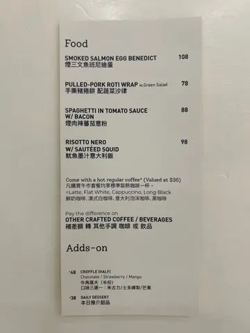 星期六收工同老婆出去食晏晝,行過見到呢間cafe。開咗其實都好耐嘅Cafe,一直都想試 見人唔多,所以就入咗去食。一直都知道呢間係食意大利粉同埋飲咖啡為主,所以我哋一坐低都叫咗個意式小雲吞同埋個bagel,同埋嗌咗兩杯Cappuccino。餐廳其實個裝修幾靚,但係啲座位唔算好舒服,因為都係固定,唔算寬敞,仲有啲迫。而餐廳喺採取大部份都手機落單付款。講返個食物質素,其實都算幾好食,因為出面食意大利小雲吞其實都幾貴,而呢間嗰個煮得都幾好食,個Beagle亦都唔錯,咖啡店都好過星巴克。可惜個價錢真係唔平,如果路過都可以試吓嘅
