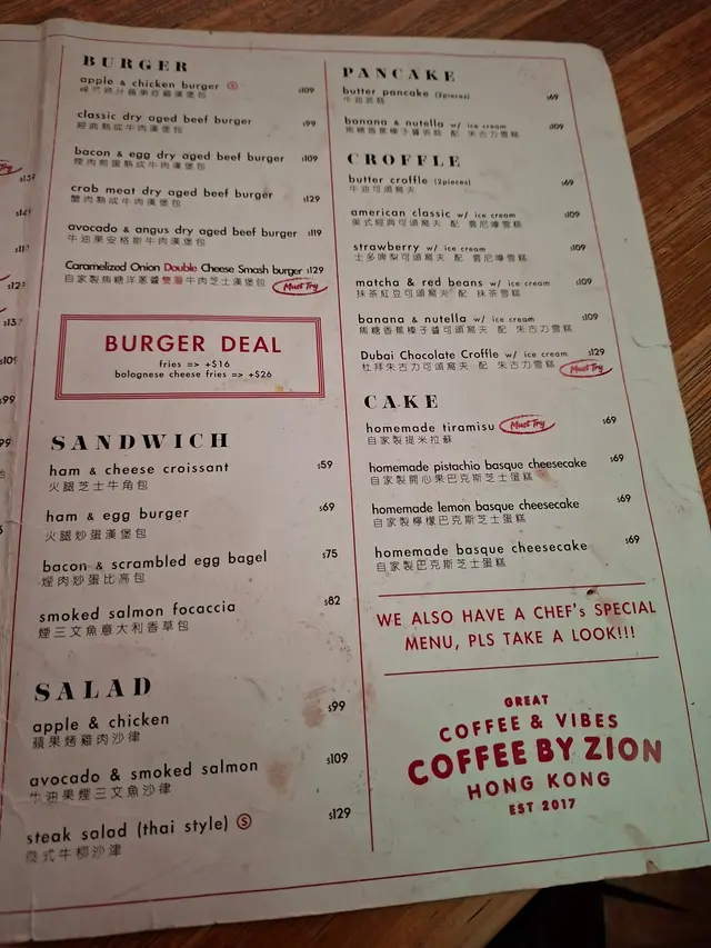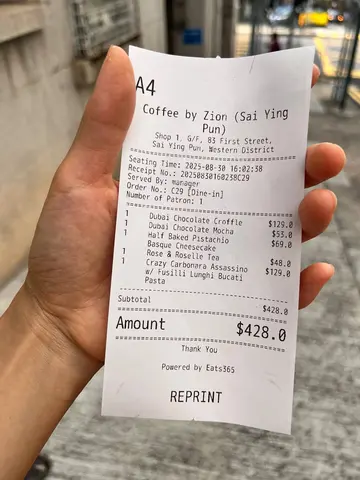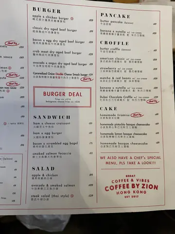 西營盤第一街嘅Coffee by Zion 位置非常方便,係正西營盤B出口對出,環境好舒適,有室外同室內嘅坐位。而室內設計極有現代感,再配搭柔和嘅燈光,令人感到好放鬆。除此之外,戶外嘅空間坐位,有大量嘅植物做裝飾🪴,感覺好Chill好Relax!我今日同朋友嚟嘆下個tea,叫左一款主菜,兩款甜品同兩杯飲品!🥞Dubai Chocolate Croffle $129- 香脆嘅窩夫,再加上朱古力雪糕喺面,店員仲將金粉噴喺甜品上面, 非常有儀式感,打卡一流!📸而且甜而不膩,係完美嘅下午茶選擇。🥯Half Baked Pistachio Basque Cheesecake $69- 系香濃嘅開心果芝士蛋糕,外焦內滑,令人一試難忘。🍝Crazy Carbonara Assassino w/ Fusilli Lunghi 0Bucati Pasta $129- 特色長螺旋意大利麵,搭配濃郁carbonara醬汁,風味獨特,值得一試。🧊lol Jasmine Green Tea $53- 茉莉花綠茶,有淡淡嘅清新茶味,適合搭配各種甜品,清爽解膩。☕Dubai Chocolate Mocha $53- 係濃郁嘅朱古力同香醇咖啡完美融合,仲有超可愛嘅 Chiikawa公仔係咖啡面, 真係得意到唔捨得😍…查看更多