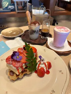 條狀年糕入味又口感煙韌!櫻花樹下奶昔 $48 配一件花煎餅奶昔入口甜美,輕微抹茶味!:)花煎餅是軟綿的紅豆蓉!韓國柑橘梳打 $52 少冰她好口渴,決定點杯梳打特飲來解渴吧!她話我知,柑橘好甜!