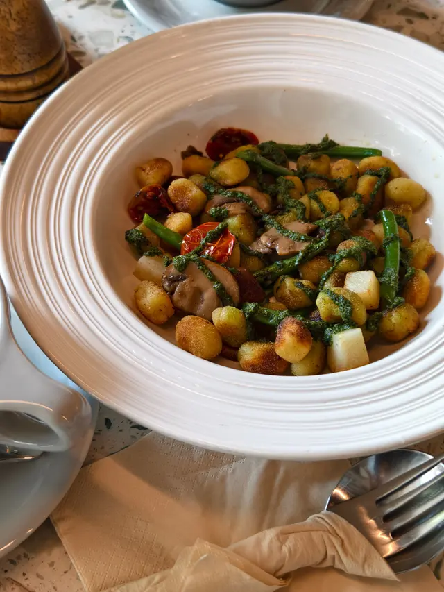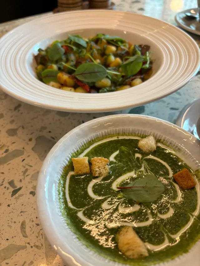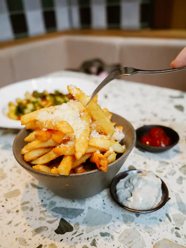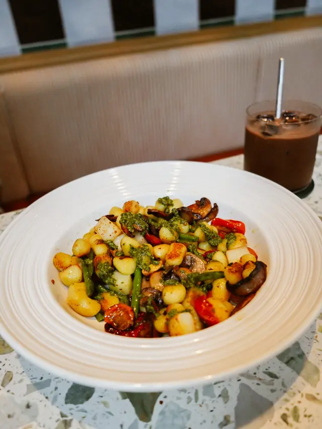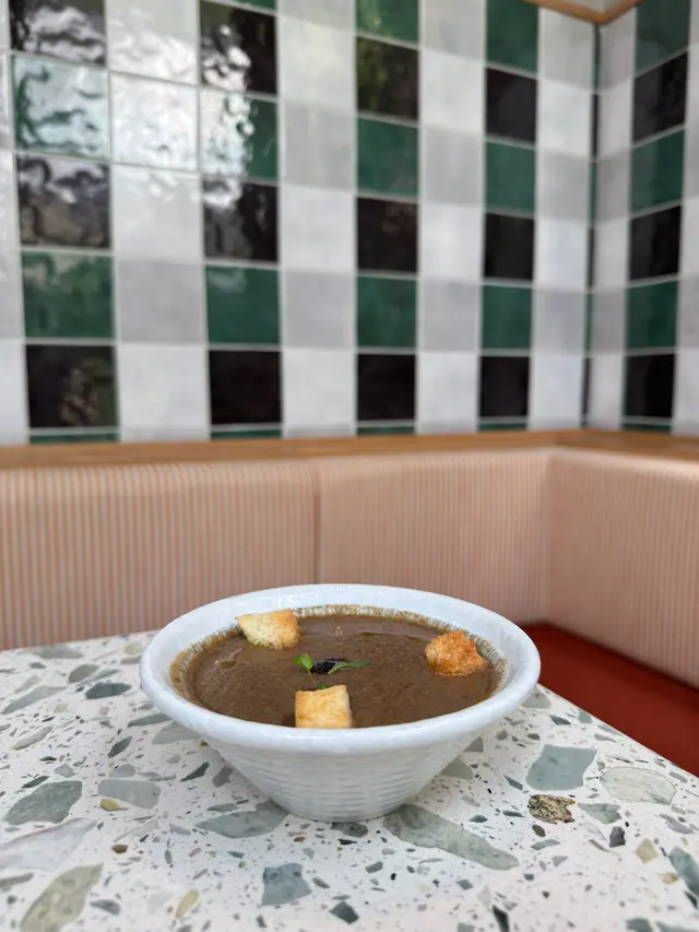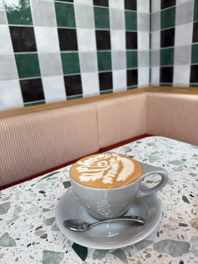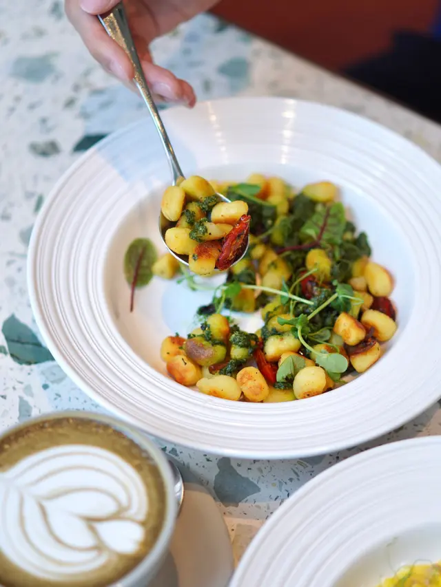 上次到訪中環陸海通大廈一樓新分店,今次再訪炮台山分店,呢間比中環空間更大,大部份座位都有自然光(原相直出),仲有室內外座位,裝修亦以意式復古風設計,簡單而優雅。食物方面,有早餐、三文治餐、烘焙包點套餐、沙律餐、午餐,呢間夜晚仲有Freeflow $198。🍝 Seafood Spaghetti with butter, anchovies sauce, prawns and squid $168 ~ 地中海鯷魚醬意粉配大蝦及魷魚,鯷魚醬帶來濃郁的海鮮風味,與意粉完美融合。🍄a small Truffle Mushroom Soup~ 松露蘑菇湯,搭配烤麵包,更加豐富。☕️Latte ~ 靚靚嘅馬圖案拉花,令人賞心悅目。