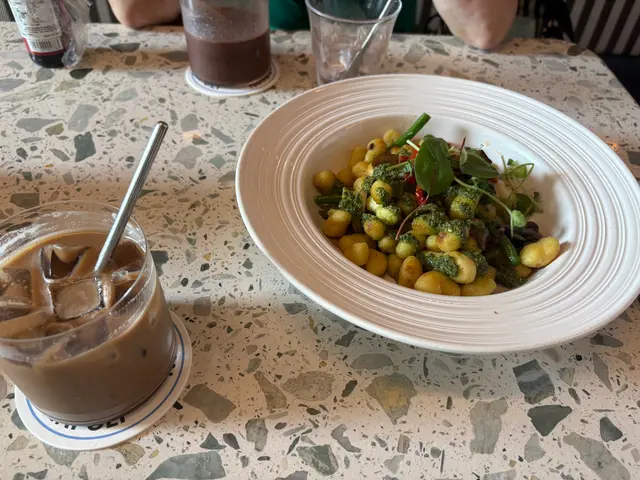 🥗 Mixed green salad $108~新鮮無花果、車厘茄、火箭菜、日本蘿蔔,健康又美味。🥃 Morning Call +$23~ 茉莉花冷泡茶搭配果味雙份濃縮咖啡,味道清新嘅咖啡帶有花香。