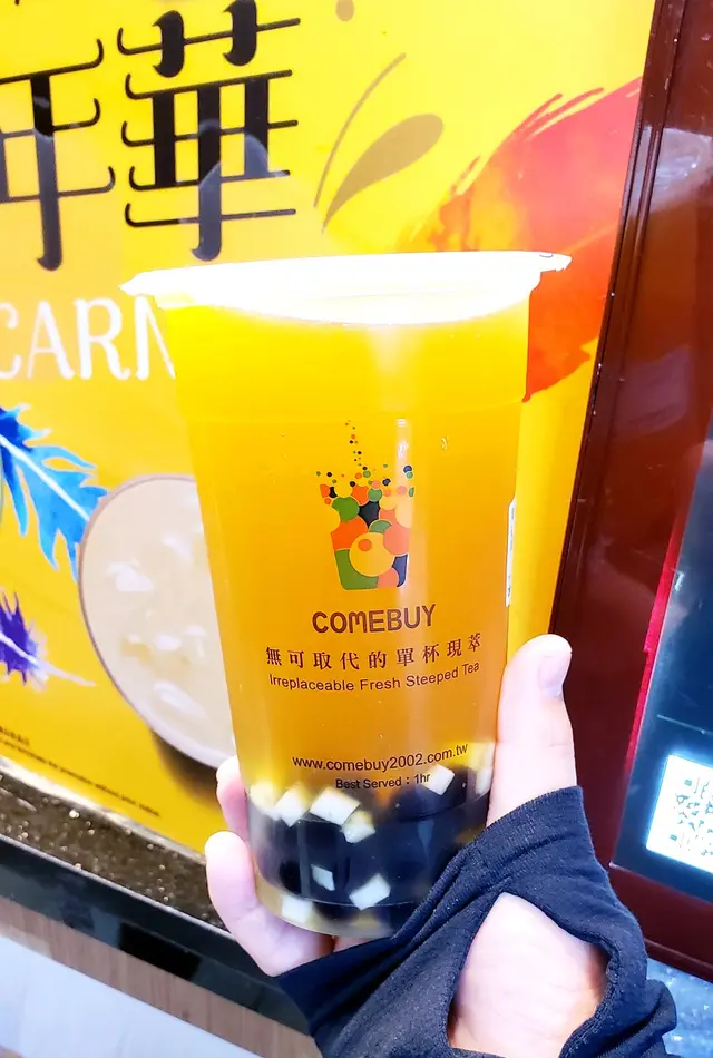 搞喱喇~記一次走過呢間Comebuy Tea,嘩,不得了,茶香撲鼻,就即刻引起咗我嘅好奇心!內裏嘅裝潢好簡約,有隻大圓柱體放滿新鮮茶葉,好似話俾我聽:“嚟!試吓!”就忍唔住叫咗杯濃濃嘅炭焙奶霜烏龍,仲加多粒咯咯彈牙嘅黑糖晶球。我講,啲奶霜滑到不得了,甜得嚟又唔膩,同埋啲黑糖晶球,真係齜嘴齜舌嘅爽口!炭焙烏龍茶底有股獨特嘅微苦,喺舌尖激起一波茶香,好涼爽又提神!🍃🍵👌 茶喺面前即磨即泡,每一口都飲到茶嘅鮮味,依家講緊,個喉嚨仲陣陣茶香呢。呢間店嘅手調茶,真係令人驚喜連連!下次我一定會再嚟,試吓其他任選嘅組合;我想,每次嘅體驗都一定唔同樣。記住喇,最正宗嘅台式飲品體驗,就喺呢度喇!👍🥤😊…查看更多