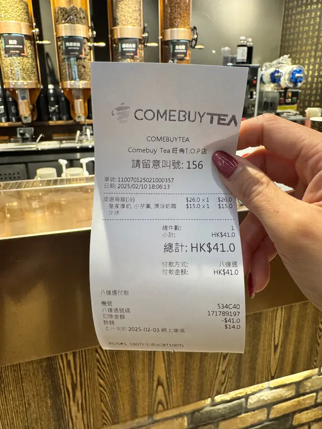 我在 COMEBUYTEA (旺角T.O.P店) 嘗試了他們的黑糖珍珠奶茶,真的是太好喝了!😍 黑糖的香甜與奶茶的濃郁完美融合,每一口都讓我感到無比的滿足。🍯 珍珠的Q彈口感更是讓整體的味道升華,讓我欲罷不能!😋 這裡的環境也很適合和朋友一起聚會,店員都非常友善,總是熱情地為我介紹各種新口味。❤️ 如果你在旺角,一定要來試試這裡的珍珠奶茶!…查看更多