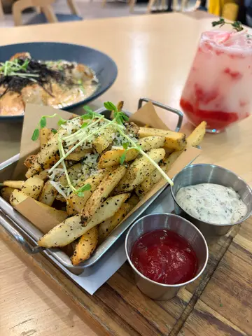 今次帶Ah Bu同Moko去觀塘搵食,bookmark咗好耐,終於去咗 Comfy by Chef’s Stage試吓佢嘅lunch set😋呢度環境好舒服,一邊設計感十足,另一邊有好多植物嘅園林感覺,超適合打卡影相,朋友或者情侶嚟都啱曬㗎!Lunch Set:紐西蘭肉眼扒 $178肉眼扒用紐西蘭優質牛肉,肉質鮮嫩多汁,煎得恰到好處,表面微焦香,內裏保持柔軟,仲有好豐富嘅配菜,提升整體口感!香焗開心果碎美國豬扒 $178我覺得呢個係必食推介👍🏻豬扒最大特色係鋪咗一層香脆嘅開心果碎,烤焗至外層金黃,口感層次豐富。豬肉保持濕潤唔乾柴,帶有淡淡果香和堅果的香味,卜卜脆真係好好食😋焦糖香蕉Oreo曲奇牛角窩夫配Movenpick雪糕 $88甜品係重點推介!牛角窩夫烤得脆口帶香,配焦糖香蕉,散發出甜蜜香氣。Oreo曲奇碎加添咗口感,Movenpick雪糕仲有幾個味道可以自選,係完美嘅餐後甜品。期間限定開心果朱古力奶昔 + $25朱古力味都幾濃郁,帶有鮮明嘅開心果香味,朱古力嘅苦甜味同開心果完美結合,飲落去既健康又滋味,都係必食推介🤩橙汁 $38清新醒胃,好適合配餐,令整餐更加平衡😌整體嚟講,Comfy by Chef’s Stage嘅食物有質素又有特色,味道層次豐富,仲有寵物友善環境,食美食之餘可以同毛孩一齊享受,感覺好Relax。…查看更多