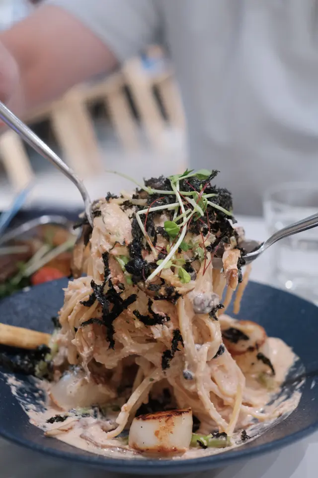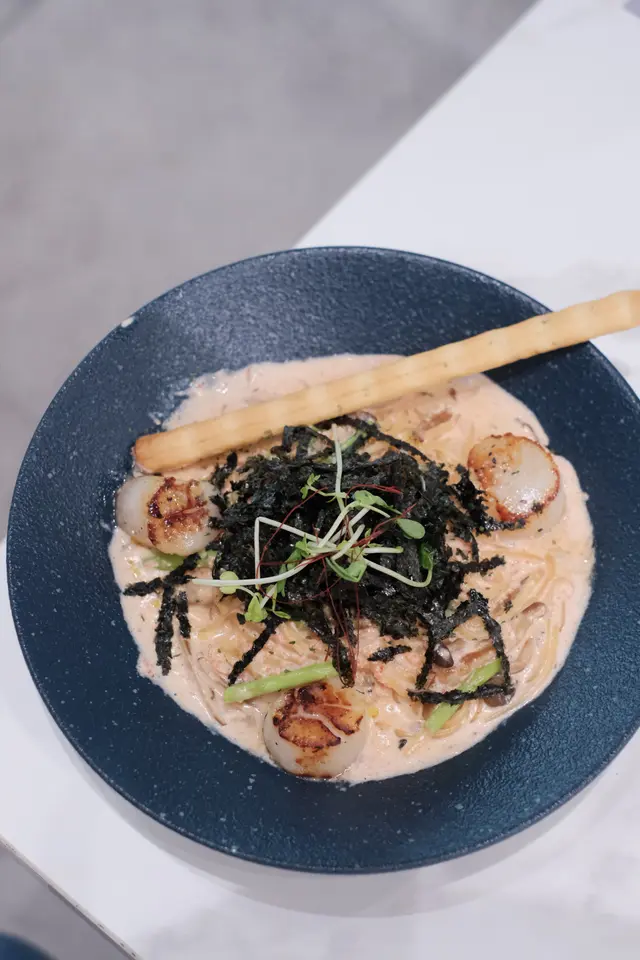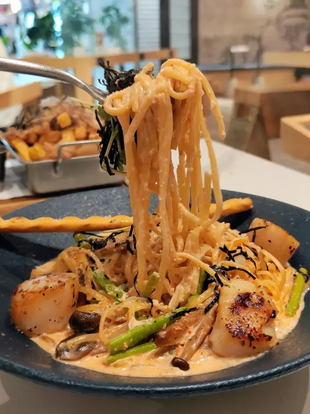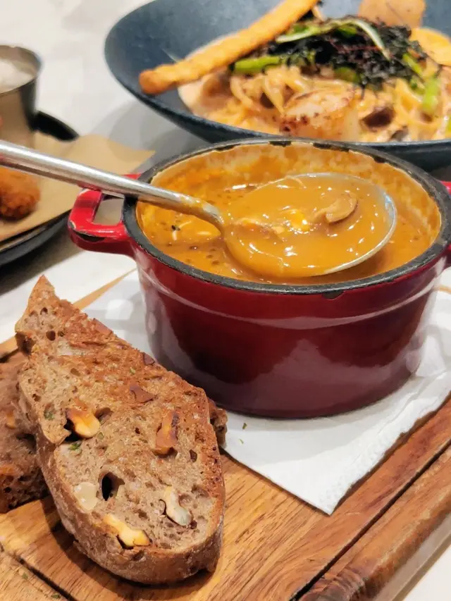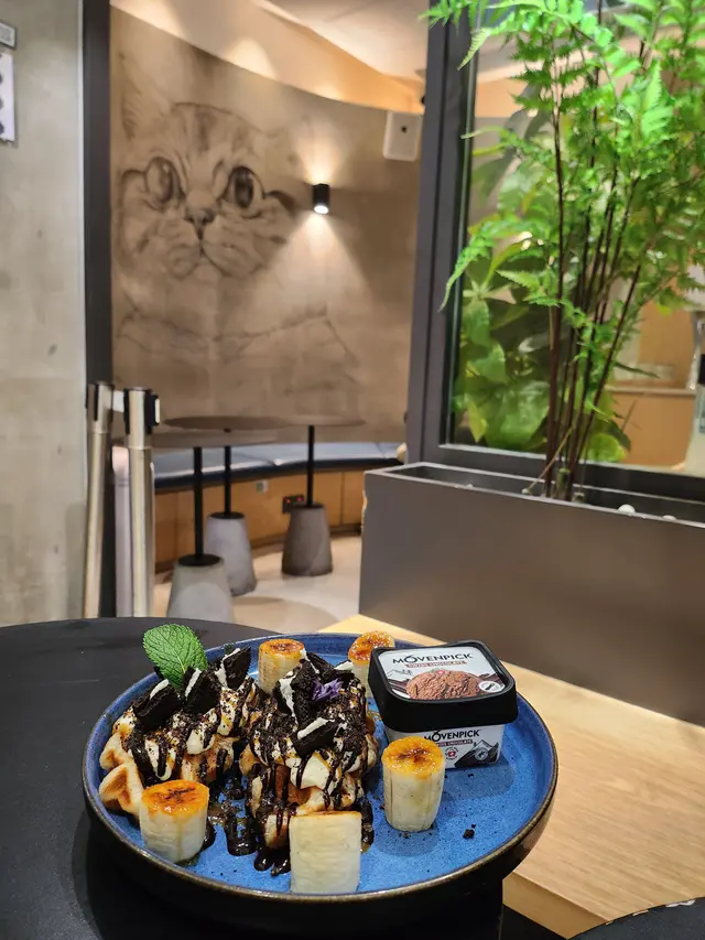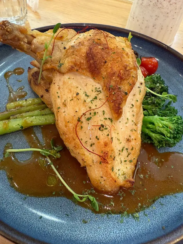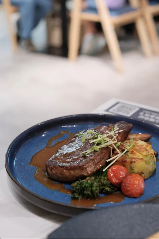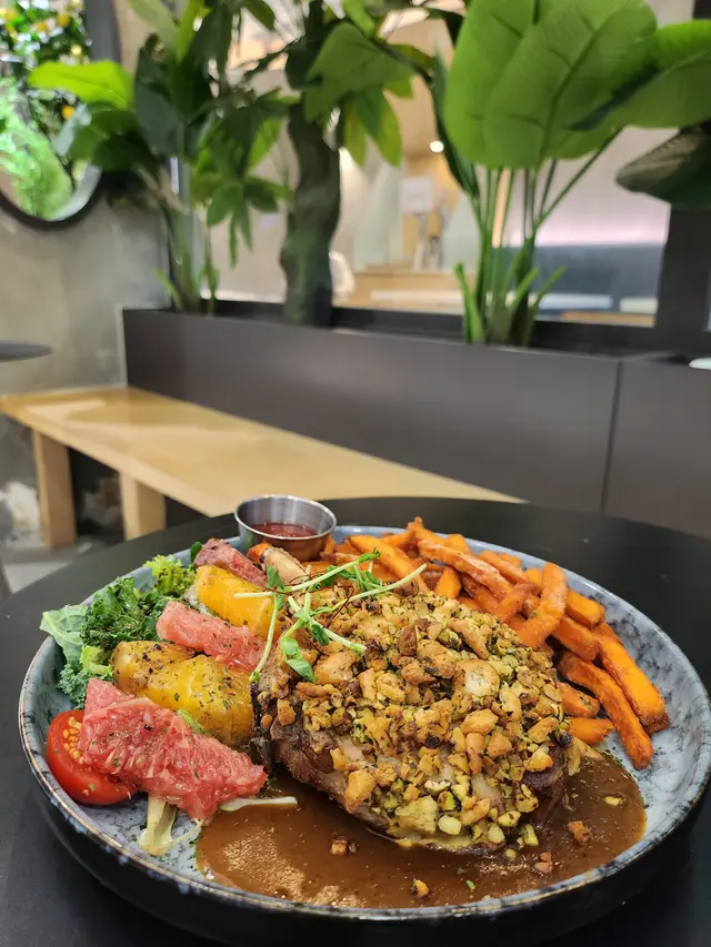 今次帶Ah Bu同Moko去觀塘搵食,bookmark咗好耐,終於去咗 Comfy by Chef’s Stage試吓佢嘅lunch set😋呢度環境好舒服,一邊設計感十足,另一邊有好多植物嘅園林感覺,超適合打卡影相,朋友或者情侶嚟都啱曬㗎!Lunch Set:紐西蘭肉眼扒 $178肉眼扒用紐西蘭優質牛肉,肉質鮮嫩多汁,煎得恰到好處,表面微焦香,內裏保持柔軟,仲有好豐富嘅配菜,提升整體口感!香焗開心果碎美國豬扒 $178我覺得呢個係必食推介👍🏻豬扒最大特色係鋪咗一層香脆嘅開心果碎,烤焗至外層金黃,口感層次豐富。豬肉保持濕潤唔乾柴,帶有淡淡果香和堅果的香味,卜卜脆真係好好食😋焦糖香蕉Oreo曲奇牛角窩夫配Movenpick雪糕 $88甜品係重點推介!牛角窩夫烤得脆口帶香,配焦糖香蕉,散發出甜蜜香氣。Oreo曲奇碎加添咗口感,Movenpick雪糕仲有幾個味道可以自選,係完美嘅餐後甜品。期間限定開心果朱古力奶昔 + $25朱古力味都幾濃郁,帶有鮮明嘅開心果香味,朱古力嘅苦甜味同開心果完美結合,飲落去既健康又滋味,都係必食推介🤩橙汁 $38清新醒胃,好適合配餐,令整餐更加平衡😌整體嚟講,Comfy by Chef’s Stage嘅食物有質素又有特色,味道層次豐富,仲有寵物友善環境,食美食之餘可以同毛孩一齊享受,感覺好Relax。…查看更多