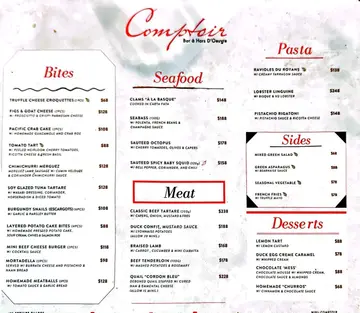菜式混合法式、意式、西班牙式及亞洲風味,特別在於餐廳供應十分少見的法式tapas,另亦有約20款tapas可供選擇。這裏有過百款法國酒,還專挑小量生產的boutique wine,客人喜歡的話更可買走繼續飲。