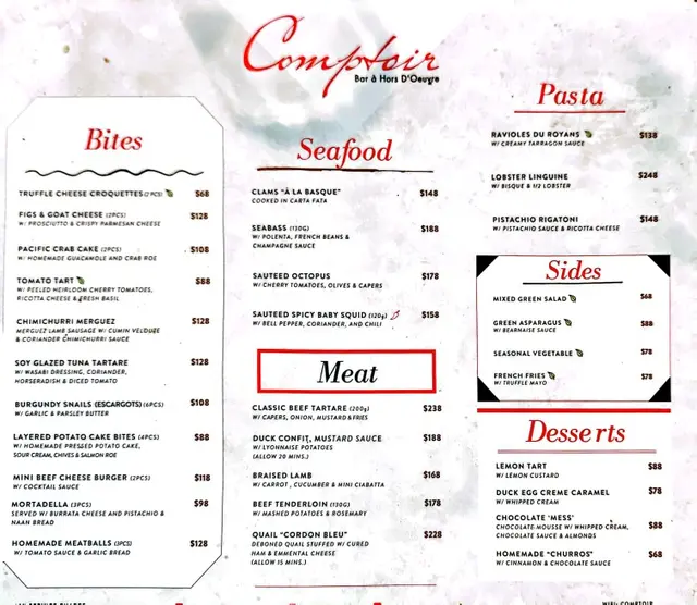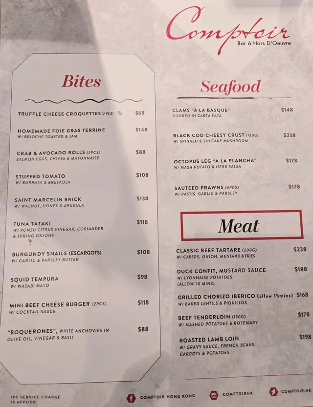 Comptoir (科士街) (西環) 網上訂座即賺Rice Dollars 網址: https://s.openrice.com/QrbS05mW700 地址: 香港西環堅尼地城科士街42號地舖 電話: +852 24539873