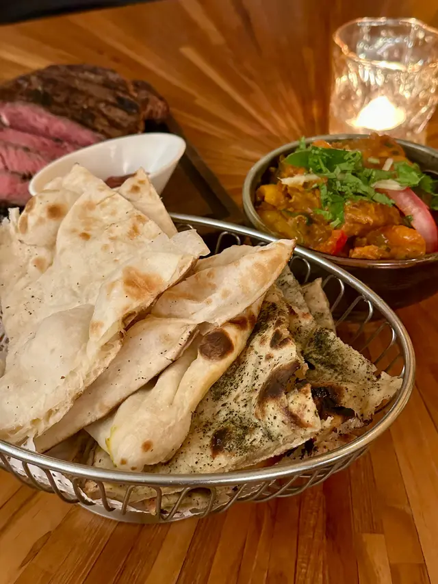 🌸Argentinian Ribeye (12 oz)with Unlimited Fries and 1 Glass of Wine12安士阿根廷肋眼牛扒配薯條放題及 紅酒一杯🌟🌟🌟🌟🌟🍀阿根廷肋眼牛扒大大塊,重牛味,牛扒有咬口,沾埋香草醬更惹味。🍀薯條可以再refill配搭少少海鹽及蕃茄醬更好味。🍀紅酒易入口,果香味濃🌸TANDOORI POMFRET (天多利烤鯧魚)🌟🌟🌟🌟🌟🌟Pomfret marinated in yogurt, Indian spices and fenugreek烤鯧魚大大條,醃料惹味,魚肉肉質厚實,而且烤得剛好,口感仍好Juice。🌸VEGETABLE PAAL KOOTU (椰子鮮奶燉雜菜)🌟🌟🌟🌟🌟Mixed vegetables with milk, fresh coconut, and cumin濃郁嘅椰子香味,有少少辣,醬汁調味好好味,雜菜內有椰菜花、豆角、青豆、甘筍等等。🌸GARLIC NAAN 蒜香烤餅🌟🌟🌟🌟🌟蒜香烤餅非常鬆軟,而且蒜味夠香濃可口。…查看更多
