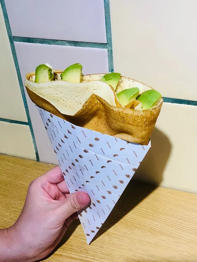 同朋友襯夏天未來臨之前,趕上戶外活動既步伐🤭入長洲揾食~除左必食大魚蛋,今次仲發掘左一間充滿靈魂既小店😍小店主打食班㦸,雖然口味同出面比唔算多,但老闆著重喺質素上,對製作每一份班㦸都好有要求,望住佢認真製作既態度😂令我地都會認真細味班戟~我地試左佢既招牌火焰牛油果同埋香桃伯爵茶梳打,首先係佢既班㦸蛋漿味好香,有厚度,有少少煙靭既感覺,沙律醬加牛油果配上少少海鹽再一齊火炙,有油脂感但又唔會好膩,仲有火炙既香氣🤤果然係招牌,想即刻叫多件,但岩岩偷聽到老闆話火灸好麻煩😂做埋呢件唔做喇~所以下次入長洲一定要再黎!仲有飲品,香桃伯爵茶梳打都推介👍🏻唔會有香精味,唔算甜,係小清新既感覺,無論配咸/甜班㦸都好夾,但我發現老闆原來有個咖啡魂在內😂有人叫咖啡佢會好開心,仲讚人good taste🤣下次等我都試試先!