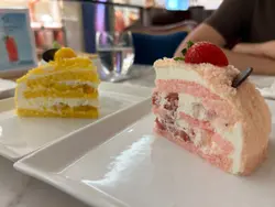 夢寐以求嘅蛋糕店cafe。一直都想試。今天終於可以試了。我經過海港城門口冇人排隊,所以立即入咗去試一個豐富嘅下午茶。嗌咗佢個signature蛋糕件裝,之後再叫咗一個新口味士多啤梨味。香滑嘅忌廉再加甜絲絲軟綿綿嘅芒果白朱古力碎係面,口感十足,這個真係蛋糕之中嘅Oscar.再配一杯的咖啡,簡直是人生樂事。
