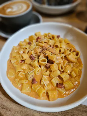 今日又係搵間cafe 坐低hea下 睇吓片咁 見到呢間cafe 都幾靚 又0負皮✨Red Prawn Clams $198呢個紅蝦大蜆意粉好好味👍🏻 紅蝦新鮮爽彈 大蜆都係肥美多汁😋😋 手工意粉質感都好好 個汁好香濃嘅蝦味 又有少少辣辣地超正😋✨Gin Sauce Ring Pasta $148個汁好味 濃而不膩 辣辣地好惹味😋😋辣肉腸好香 戒指粉都好煙韌 推薦✨Long Black $40 飲嘅時候啲冰融晒變到有啲淡😂✨Earl Grey Latte $50唔太覺有Earl Grey 味 似一杯普通嘅Latte 🙈🙈總括黎講質素都好好😋😋 仲要唔小心黎錯左 額外免費獲得一杯Iced Latte環境好舒服 係有少少隱蔽同埋要行好多樓梯先去到🙈 佢仲係pet friendly 啱晒養狗狗嘅朋友去chill 下🤩味道❤️❤️❤️❤️💔抵食❤️❤️❤️❤️服務❤️❤️❤️❤️環境❤️❤️❤️❤️💔💰午餐人均~$218(唔洗+1)…查看更多