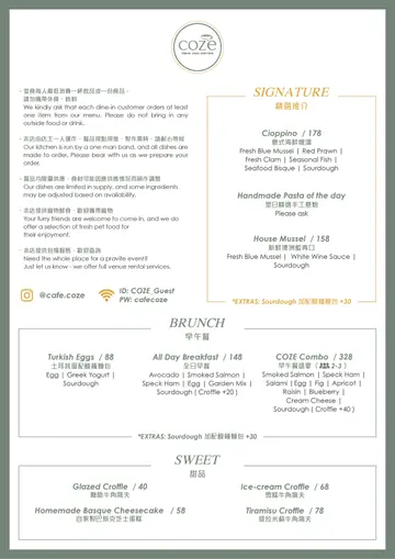 位置有點偏僻,從堅尼地城B出口,轉右走到街尾,乘升降機往上,在羲皇臺前的小路走進去,直走到尾就看到位於右手邊的「COZE café」