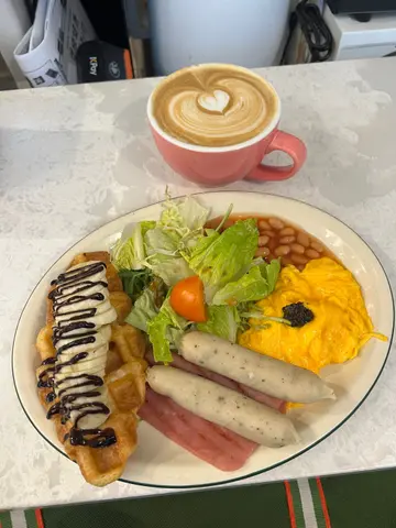 今日去開石門,朋友話bookmark左呢間cafe好耐,做完野差唔多十二點去試一試。去到都80% full, 我地三個人得返一張二人枱,店員都幫我地問其他客人搬一搬位俾張角落L形枱我地三個人坐。cafe入面有個mon影住出面俾人睇住架車都幾貼心。飲品同食物都來得超快! 叫食物嘅話飲品仲有得用跟餐價。朋友叫嘅明太子雞肉意粉。意粉睇到係煮得較硬身唔會太軟。deluxe all day breakfast 可以揀麥包/牛角包/scone. 仲有紅色火龍果超有誠意! 薯仔沙律調味非常好,火腿都唔係普通茶餐廳火腿 (本身睇到menu仲諗住走火腿) 食落好有驚喜!有機會再去石門會再幫襯!…查看更多