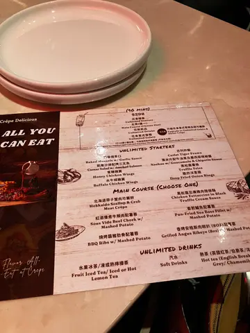 冇諗到居然$298可以任食頭盤同雪糕!?🔅主菜(選一)✅北海道帶子蟹肉可麗餅:帶子是刺身級的,中間夾了蟹肉。✅香烤安格斯肉眼扒:估唔到有肉眼扒,呢個價錢算抵食。❤️任食頭盤一共8個頭盤,有雞翼、沙律、炸蝦、薯條等等… 就算主食唔夠飽,頭盤都食夠飽你。❤️任食意式雪糕有幾隻味,都係朱古力最好食!有少少苦味又滑,甜度啱啱好。❤️任食甜crepe($+38)原來再加38蚊可以任食crepe ! 每人食一塊就回本🥹。揀咗Tiramisu 同埋斑蘭芒果味,皮薄多cream。Tiramisu 味仲要有舊咖啡味雪糕,加38蚊食到真係抵到爛!真係請人食飯都唔失禮,環境又靚,頭盤同雪糕任食呢下真係贏咗,如果胃口好,真係推薦叫埋甜品。…查看更多