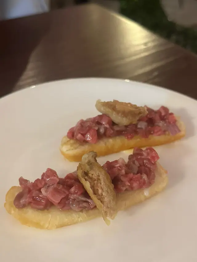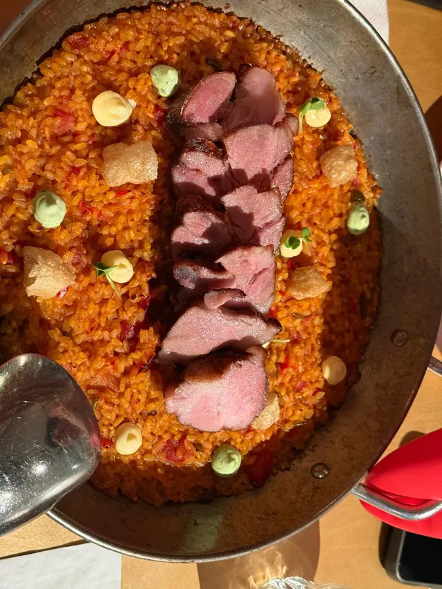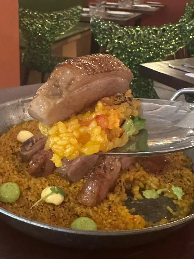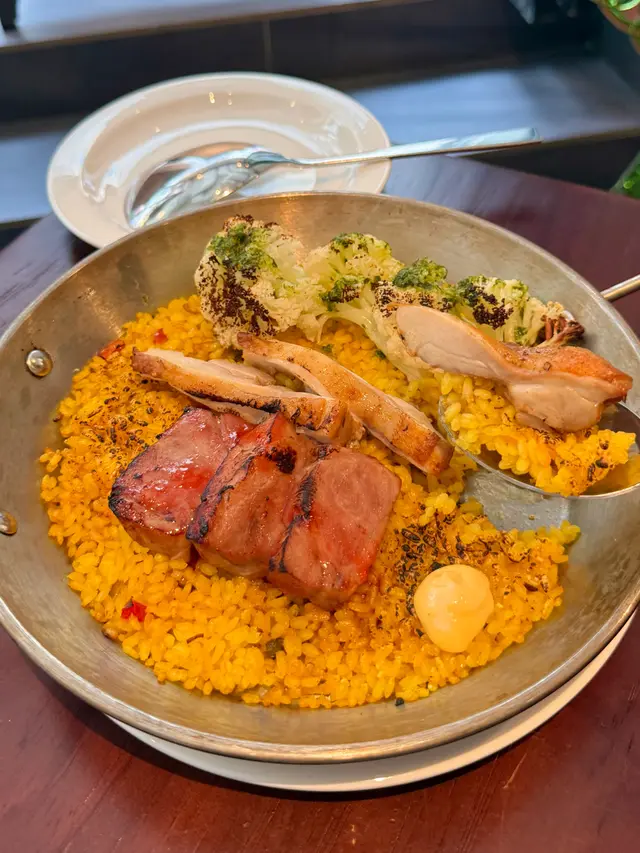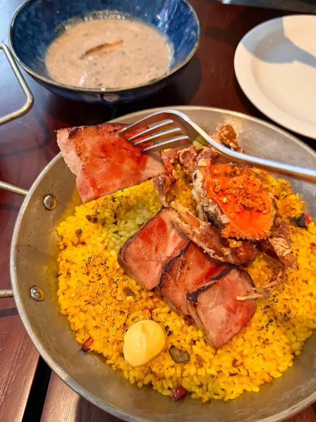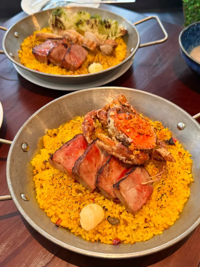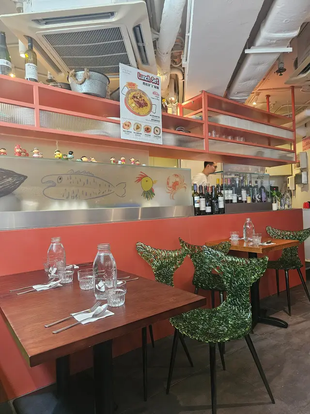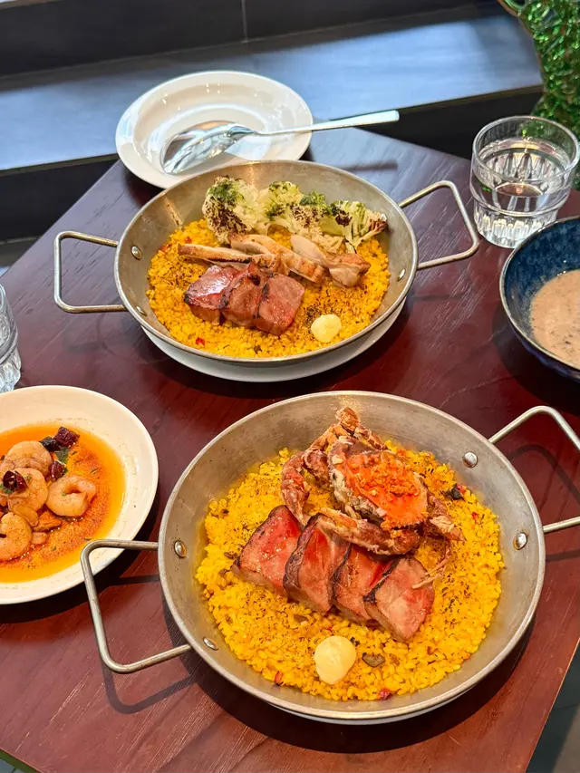 今晚同朋友嚟呢間 fusion 西班牙酒館。環境輕鬆,裝修幾有風格,適合小聚 🪑✨。菜式混埋西班牙傳統同香港元素,份量適中,兩人食得飽飽 😋。Starter: Tomato Tartare $88 🍅 番茄他他配 Gin 湯力啫喱。 咸鮮特別,Gin 啫喱加咗有趣嘅氣泡感,幾開胃 🥂。係個幾新穎的組合Tapas: Gambas al Ajillo $158 🍤 有四隻西班牙蒜油大蝦。 蒜油香氣撲鼻,蝦肉彈牙惹味,蒜蓉汁一流,值得一試 👍Spanish Ham Croquette $68 (2件) 🥖🧀 西班牙火腿炸奶球。 內裡濕潤奶味濃郁,滑溜順口;火腿加咗咸鮮層次,咬落脆軟分明,好過癮 🤤主菜: Iberico Char Siu Paella $388 🐷🍚 黑毛豬叉燒西班牙燴飯 幾有驚喜!黑毛豬叉燒肉汁天然,蜜汁焦香有肉味,配濕潤 paella 飯粒,融合中西超正。飯底微焦,啖啖食唔停 😍飲品: Red Sangria $68 🍷:果香濃郁,微甜解膩,好配西班牙菜 🍇Virgin Mojito $58 🥤:清新 Lime + Soda 水,爽口無酒精,完美 ending 🌿兩人 $910.8 ,午餐仲有自選 Paella 兩餸飯,晚餐推 fusion 菜,推薦畀愛西班牙食嘅朋友 😋…查看更多