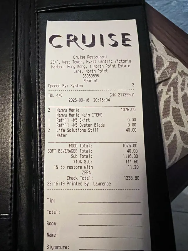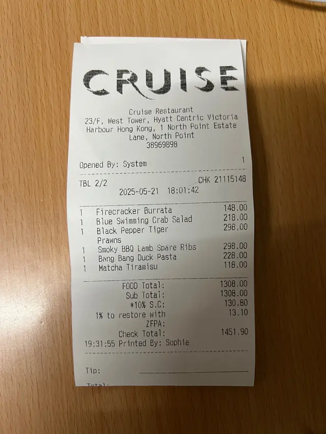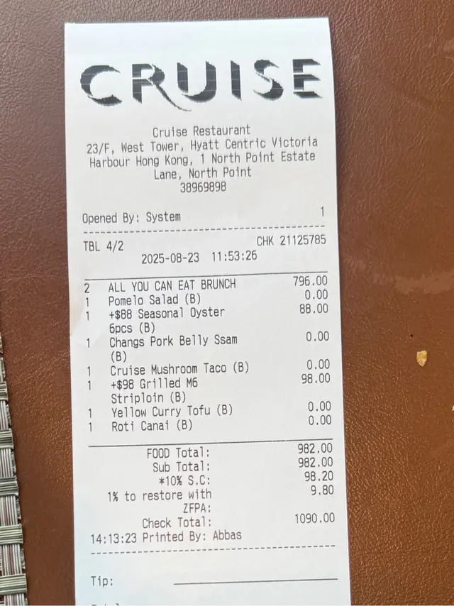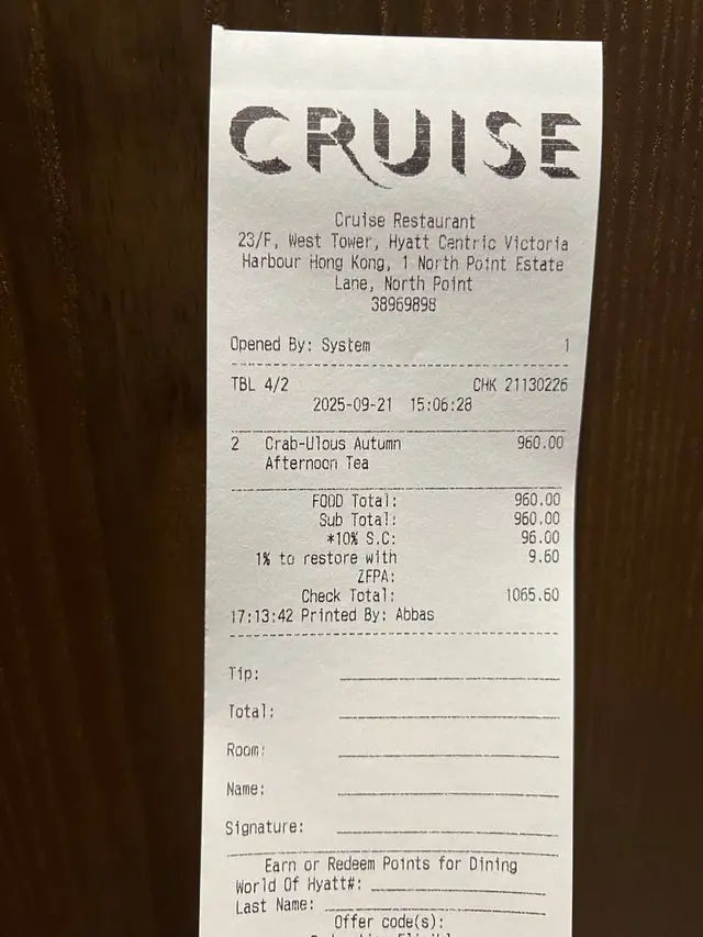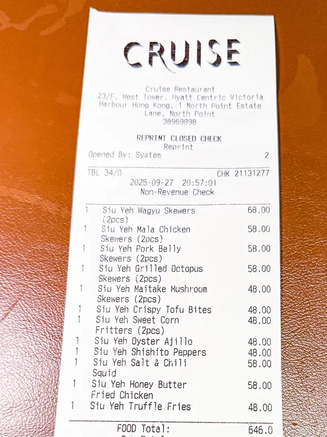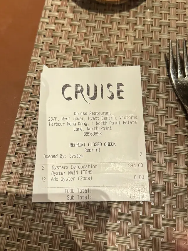 Cruise空中餐廳及酒吧 (北角) 網上訂座即賺Rice Dollars 網址: https://s.openrice.com/QrbS0BTO800~dHtU0kYuV 地址: 香港北角北角邨里1號香港維港凱悅尚萃酒店西座23樓 電話: +852 38969898