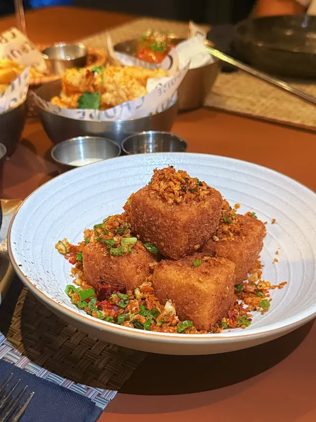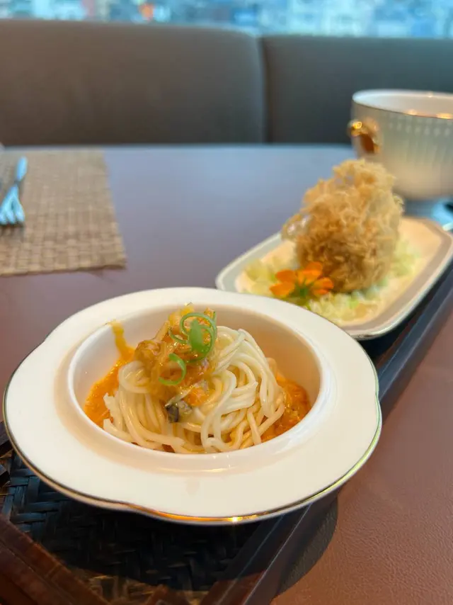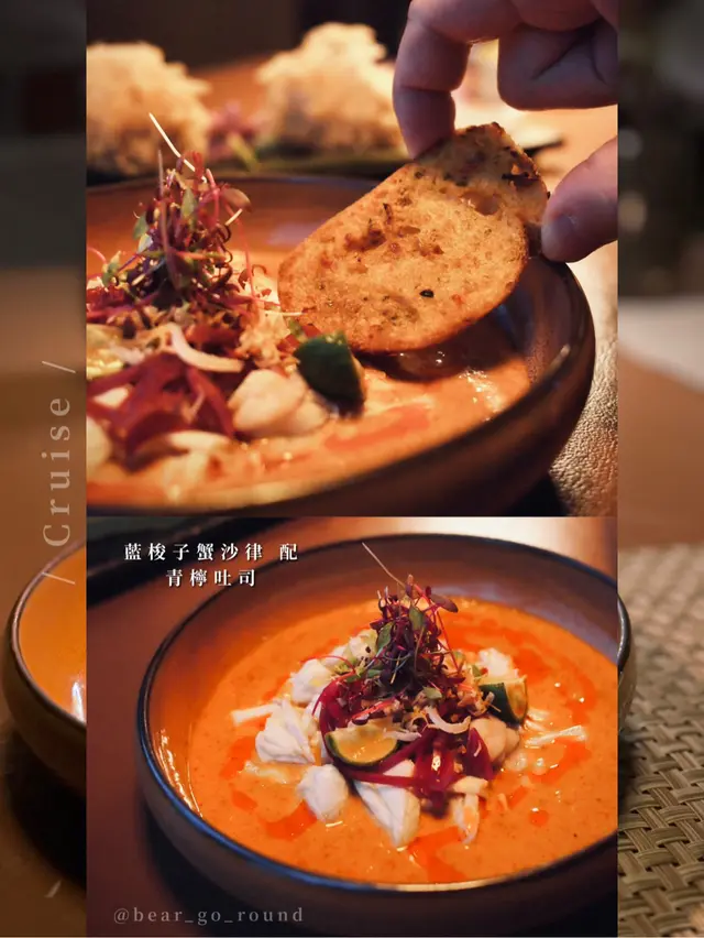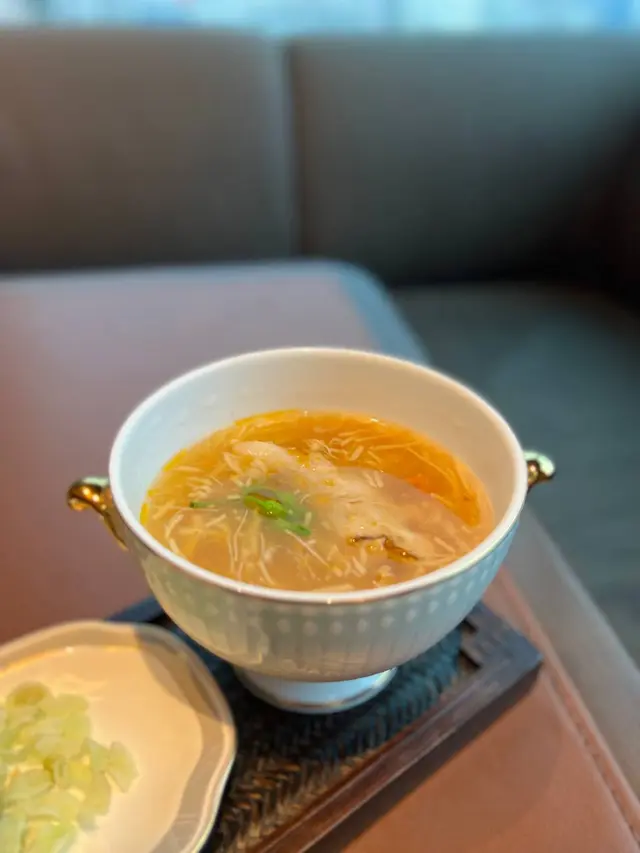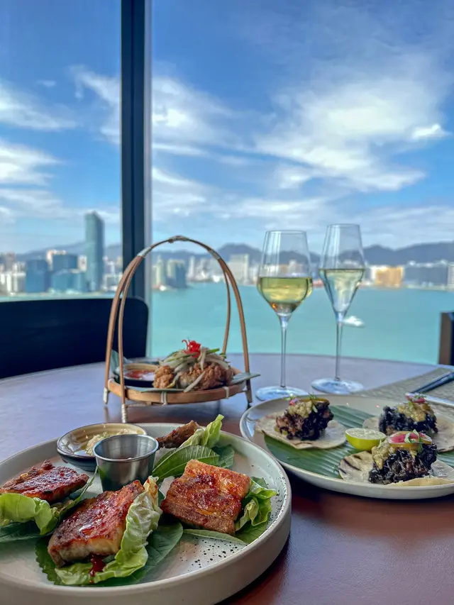 秋風起,到咗食大閘蟹嘅季節,就連酒店下午茶都用大閘蟹做主題,推出「秋日蟹逅」下午茶,鹹點同埋甜品都各有特色🫖鹹點♦️原隻鎮江薑醋蒸大閘蟹勁開心可以食到原隻大閘蟹,一人一隻,入面都有幾多鮮甜嘅蟹膏🦀 側邊仲有手套,拆蟹嘅工具,咁就唔怕食得好狼狽啦🥰♦️大閘蟹蟹粉小籠包皮薄餡靚,入面嘅餡全部都係大閘蟹嘅蟹粉😍♦️蟹肉竹笙魚翅羹呢個幾鮮味嘅魚翅羹入面見到絲絲蟹肉。♦️蟹粉拌麵呢個面嘅質地幾爽口,因為蟹粉一齊食,真係超正🍜♦️大閘蟹蟹粉芋角個人最鍾意呢一個芋角,外層酥脆包裹住軟綿綿嘅芋泥,入面就係滿滿嘅蟹粉✌🏻 非常有特色。甜點♦️螃蟹造型朱古力外層係朱古力包裹住酥皮絲、花生醬、鹹蛋黃同煉奶🤣 螃蟹造型真係勁cute啊。♦️桂花香梨慕斯蛋糕呢個係香梨造型嘅蛋糕,外層係朱古力,入面就有桂花口味嘅mousse,同埋蜜餞過嘅梨肉🍐♦️佛手柑法式千層酥呢個法式千層酥幾酥脆,入面仲有佛手柑嘅味道,都幾fresh㗎🍊♦️陳皮曲奇中間有4件曲奇,味道好特別,用上陳皮同埋薑調味🍪♦️紅豆湯係一碗幾足料,有百合同埋蓮子等嘅配料。自助小食區除咗套餐嘅鹹點同埋甜點之外,仲有自助區,無限供應甜品 。♦️黑芝麻雞蛋仔有即叫即製嘅雞蛋仔,外脆內軟都幾正🥚♦️限定雪糕今日有六款口味,我就揀咗黑芝麻同埋花生醬味,仲有八款配料可以自己加添喺雪糕嚟食呀🍦氣泡酒呢個下午茶餐有兩杯嘅氣泡酒,如果唔想飲酒嘅朋友亦都可以揀茶或者咖啡類嘅飲品🥂呢餐望住個海景食得好愉快,食物有特色又好啱打卡,店員會主動問我哋要唔要同個tea set合照,非常服務殷勤啊😎…查看更多