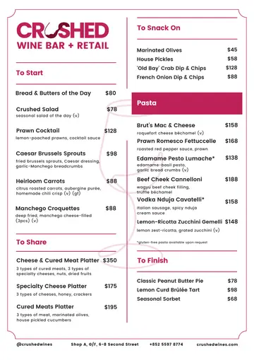 Nestled in the heart of the friendly neighborhood of Sai Ying Pun, 𝐂𝐫𝐮𝐬𝐡𝐞𝐝 𝐖𝐢𝐧𝐞 𝐁𝐚𝐫 is a cozy wine bar with homey interior designs, offering a curated selections of exceptional wines from around the globe, in pairing with artisanal small plates that specially crafted to elevate the drinking experience.-Their meticulously curated wine list features an array of sustainable small-batch wines sourced from across the world, from vibrant and complex Chenin Blanc from South Africa to exquisite red blends from Sardinia, Italy, there’ll always be a perfect pick for oenophiles or curious newcomers. (My pick of the night goes to 𝐓𝐡𝐞 𝐃𝐨𝐧 𝐁𝐚𝐝𝐝𝐨𝐫𝐞 𝟐𝟎𝟐𝟐, a blend of 50% Cannonau and 50% Syrah, boasting notes of spices and chocolate on the palate with full and elegant tannins.)-In complementing the top-notch wines, their thoughtful menu of French-American comfort food highlights “𝐎𝐥𝐝 𝐁𝐚𝐲” 𝐂𝐫𝐚𝐛 𝐃𝐢𝐩 & 𝐂𝐡𝐢𝐩𝐬 with crispy chips made with wonton skins; 𝐁𝐫𝐮𝐭’𝐬 𝐌𝐚𝐜 & 𝐂𝐡𝐞𝐞𝐬𝐞 with roquefort cheese béchamel for mouthful of satisfactions; 𝐕𝐨𝐝𝐤𝐚 𝐍𝐝𝐮𝐣𝐚 𝐂𝐚𝐯𝐚𝐭𝐞𝐥𝐥𝐢 for its lusciously creamy and spicy kick flavors; as well as the signature 𝐆𝐫𝐢𝐥𝐥𝐞𝐝 𝐂𝐡𝐞𝐞𝐬𝐞 𝐰𝐢𝐭𝐡 𝐇𝐨𝐮𝐬𝐞𝐦𝐚𝐝𝐞 𝐓𝐨𝐦𝐚𝐭𝐨 𝐒𝐨𝐮𝐩.…Read More