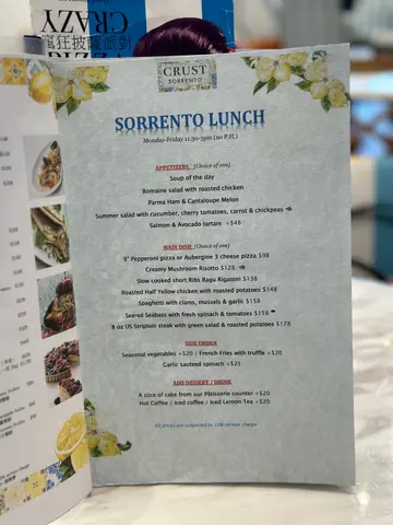 將軍澳澳南《Crust Sorrento 》裝修以藍白為主要色調,係一間好有度假feel 嘅意大利餐廳ღ APPETIZERS前菜份量十足!-Parma Ham & Cantaloupe Melon味道帶點鹹香嘅巴馬火腿配香甜嘅哈密瓜🍈甘甜芳香,入口細緻-Salmon & Avocado tartare +$48三文魚搭配牛油果🥑食落清爽又冇油膩感好清新ღ MAIN DISH叫咗兩款主菜都好好味呀😍-Seared Seabass with fresh spinach & tomatoes $158魚皮煎得好香,魚肉雪白嫩滑,加上開胃嘅蕃茄同新鮮嘅嫩菠菜,健康又美味-8 oz US Striploin steak with green salad & roasted potatoes $178叫咗五成熟,整得啱啱好😌肉質軟嫩,口感細緻,肉味香濃伴碟仲有清新沙律🥗同焗薯😋ღ SIDE ORDER另外仲叫咗又脆又香嘅薯條🍟同蔬菜,好滿足〰️Seasonal vegetables +$20 French Fries with truffle +$20ღ DRINKIced lemon teaHot latte …查看更多