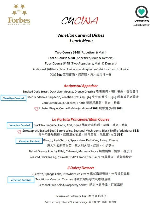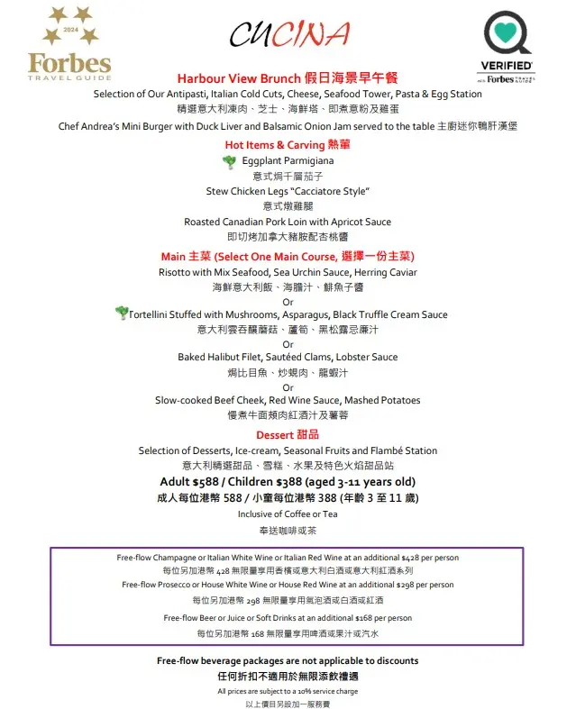 Cucina 由2020年起連續獲評為《福布斯旅遊指南》四星餐廳。🏆屢獲殊榮主廚Andrea 來自意大利西北部,將意大利進口優質食材加上廚藝,帶比大家正宗意國風味!當晚有幸跟主廚見面,更親自為主菜添上矜貴松露,真係好有口福✨餐廳坐擁維港海景🌃,每晚8點更可以即席欣賞「幻彩詠香江」燈光秀💫 美景 美食 浪漫氛圍 ~~ 絕對好適合慶祝、約會和閨蜜聚會🥂𓏸𑁍𓏸𓈒𓂃𓂃𓂃𓂃𓂃𓂃𓂃𓂃𓏸𓈒𑁍ᵂᴴᴬᵀ ᵂᴱ ᴼᴿᴰᴱᴿᴱᴰChef's Special Set Dinner $888/pp頭盤 ❁ 麵包配橄欖油❁ 粉紅生蝦薄片・牛油果・香橙・鯡魚籽鮮甜粉紅生蝦配上矜貴嘅魚子醬✨賣相已經相當滿分📸 這道菜加入檸檬汁同橄欖油,還有🍊香橙片,入口感覺好清新又開胃!❁ 海膽忌廉汁雜錦海鮮意粉意粉真的Al dente,口感一流🤩 而且非常掛汁,將濃郁的海膽汁發揮到極致🍝,再配有新鮮的青口和蜆肉,好滿足!❁ 燒西冷牛扒・香煎鴨肝原來香氣四溢入口即化的鴨肝放上層;下層是煎得外脆內軟+煎得恰到剛好三成熟的西冷牛扒,最重要是主廚Andrea親自加上去的新鮮絕頂黑松露片,真的超好味😋甜品❁ 榛子蛋糕・白朱古力慕斯・青蘆筍沙冰・焦糖濃郁🌰榛子味和白朱古力mousse 超夾,真係咽下去已經開始要再回味🫣❁ 紅酒🍷美景點可能缺少美酒🤭小編就點了2杯西班牙葡萄酒Rioja,因為以橡木桶中釀製多年,絕對可以稱得上Bordeaux在法國的地位,味道中夾雜著煙燻香氣配牛扒食非常合適!想慢慢享受最美景,又可以打卡又浪漫,記得預旱至少1~2星期訂座⬅️⬅️必搶Window seat 攻略🤭…查看更多