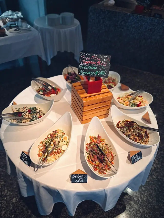 慶祝結婚週年紀念,同老公去咗食Weekend Brunch。餐廳環境好舒服,景觀開揚有無敵維港景,望住維港海景嘆brunch真係幾Chill~如果夜晚黎仲可以睇到每晚8時嘅「幻彩詠香江」。最先來個擺盤好靚✨Seafood Tower 海鮮塔✨ 有齊龍蝦🦞、長腳蟹、青口、螺、蝦🦐、鮑魚,龍蝦爽彈,蟹腳鮮甜,磯煮鮑魚好入味彈牙。🔶迷你鴨肝漢堡|鴨肝油香與洋蔥甜味很夾✨Main course 主菜✨🔶焗比目魚•炒蜆肉 龍蝦汁|比目魚魚肉好嫩滑,配上鮮味龍蝦汁同炒蜆肉。🔶慢煮牛面頰肉紅酒汁及薯蓉|牛面頰肉煮到超淋,入口即化咁~✨即叫即煮Pasta& Egg :✨廚師🧑🍳會即場為你即煮意粉&蛋,可以自選Pasta同醬汁。🔶龍蝦汁海鮮意粉🔶四重芝士貓耳朵| 芝士🧀控表示很喜歡!✨自助區:✨意大利凍肉、芝士、沙律、熱葷、甜品、水果 可以自取。特別推薦即整甜品Cherries Jubilee👍🏻…查看更多