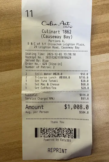 This French restaurant is located on Leighton Road in Causeway Bay, as part of Towngas flagship store, together with Towngas Cooking Centre. It is under executive chef Shine Chiu, who advocates the use of locally sourced ingredients on a farm to table concept.Walking up the stairs, we were seated at the main dining area. The décor is stylish, offering a cozy and relaxing ambience to diners. There is also a private room on the other side of the stairs, tailored for larger groups.I have opted for the 4-Course Set Dinner ($728) while my wife goes for the 3-Course ($658). For appetizers, I started with Tuna Tataki, with the raw tuna dressed in dashi and a bit of wasabi to season, together with some sesame to increase the fragrance. The shredded kombu further adds umami to the fish.The other appetizer I picked is Hand-cut Beef Tartare a la Parisienne. Served on a cut-open bone marrow, the beef tartare is seasoned beautifully, together with some pickled shallot. On the side are some fried chips which can combine with the tartare to enjoy together, providing additional texture. Good in taste.For the main course I have Catch of the Day, a local-farmed seabass, filleted and then pan-fried, with crisp skin, moist and tender flesh, paired with a garlic beurre blanc sauce which shows the perfect balance of sweetness and sourness. There are also some seasonal vegetables to balance the palate.I picked Burnt Basque Cheesecake for dessert. The cheesecake is rich, soft and sweet, with the cream cheese delicious in taste. On the side are some orange compotes to give a bit of citrus acidity to balance the cheesecake. Indulgent but rewarding, it provided a satisfying finish to the dinner.Together with two glasses of Schloss Johannisberg Riesling 2023 ($118 each), the bill on the night is $1,846. Service is good, but the staff could explain more the dishes, especially considering the farm-to-table concept, it would be good for diners to know where some of the food ingredients actually come from.…查看更多