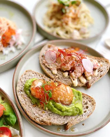呢間精品咖啡️Cafe 越開越多分店☕多次喺咖啡界奪獎🏆除咗咖啡 仲提供輕食, 意粉, 甜品✨設戶外座位 望住海景 夠晒寫意🌊.📌SMORREBROD北歐式三文治 $138〰️TWO toppings任選兩款〰️嚟到當然要試吓招牌北歐三文治🥪選用黑麥麵包 扎實煙韌 酸中帶麥香🥖1️⃣Pan-seared scallop & avocado香煎帶子配牛油果牛油果蓉份量勁多 軟滑Creamy 濃郁清香🥑兩大粒帶子 好厚身 煎至半熟 軟嫩入味🦪配埋三文魚籽同炸蒜 鹹鮮香口 好惹味🍣🧄2️⃣Fig & hazelnut toast (with ricotta & maple)無花果榛果吐司配里考塔芝士及楓糖無花果軟熟清甜 配上綿滑濃香Ricotta 清新輕盈 味道超夾🧀再加埋香甜楓糖漿同香脆榛子 層次更豐富🍯🌰.〰️Lunch Combo〰️📌Satsuma chicken spaghetti招牌忌廉雞肉意粉 $138唔知係唔係午市套餐 份量偏少👀忌廉汁濃稠度剛好 香滑creamy🤍加咗少量辣粉 惹味得嚟 平衡膩感🌶️意粉爽彈煙韌 口感唔錯🍝雞肉好嫩滑 不過有雪藏味🍗另外仲有啲肉碎 都幾足料🙌🏻.📌3”黑森林巴斯克芝士蛋糕 $68嘅蛋糕 賣相好精緻❤️🔥除左車厘子 仲有酸甜爽滑車厘子啫喱🍒配以64%黑朱古力 同軟滑雲尼拿mascarpone 口感味道更豐富💯朱古力巴斯克芝士蛋糕外層扎實 中間軟心🍰啖啖甘甜朱古力味中 帶點芝士鹹香🍫🧀雖然得3” 細細個 但食落都幾溜👀.Lunch配$50或以下飲品📌Long black (Iced) 咖啡口感順滑 甘苦濃醇☕️手多加咗豆奶 味道唔太夾 嘥咗杯靚啡🙂↕️.📌Coconut matcha latte (Iced) $58做到三色漸層 打卡一流💚🤍🤎清甜椰子🥥回甘抹茶🍵香醇咖啡☕️三者味道完美平衡‼️.如欲查看相關食物相片 可查閱本人已上傳之影片🎦…查看更多