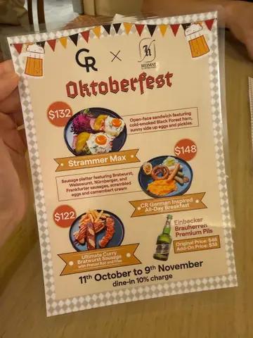 apm呢間cupping room係人氣本地coffee shop,想飲佢啲咖啡好耐☕️今次終於試到,仲有期間限定crossover HEIMAT食品,主廚Peter仲在場介紹佢特製嘅美食👨🏻🍳呢次Oktoberfest由10月11號至 11月9號,三款item🆕🆕🆕🥪Strammer Max 特製冷燻黑森林火腿三文治包係用咗 sourdough,低升糖更健康,口感味道都好好,加上cold-smoked Black Forest ham,加埋太陽蛋、酸瓜有火腿鹹香、半熟雞蛋蛋漿、味道好夾,酸瓜微鹹更開胃🤤🥨German All-Day Breakfast 招牌德式全日早餐Sausage platter 有四款香腸:Bratwurst 德國油煎香腸、Weisswurst白香腸、Nürnberger德國腸、Frankfurter 法蘭克福香腸另有炒蛋、Bretzel 蝴蝶形扭結麵包☕️Latte☕️Mocha🍺Einbecker Brauherren Premium PilsOriginal Price: $48 ;Add-On Price: $38…Read More