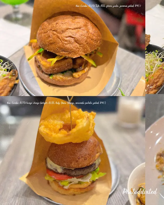Cutting Onions @cutting._.onions 📍:香港紅磡馬頭圍道63號啟岸1樓02號舖🚗:土瓜灣地鐵D1出口 步行6分鐘📞:+852 6896-6862💲:~HKD200/head for dinner Food quality✔️:Bao Combo(house cheese burger, kids Yuen Yeung, avocado potato salad), Bao Combo (Soft shell crab, Chocolate, Wings), Bao Combo(Tofu, green soda, jicama salad) 👌🏼:Main combo(riso, green soda, chicken nuggets), Maple Milk, Sai Dor, Tong Chong Bang總結:😋呢間係間有心機嘅小店 行創新路線 食物質素就唔算有驚喜但志在你感受到佢嘅熱情❤️🔥😋我比較喜歡佢哋嘅漢堡 排名為Tofu> Soft shell crab >house cheese burger 漢堡足料大份 尤其係後者一啖咬唔哂‼️😋呢度有樣好佢哋有個套餐Bao Combo/Main combo 跟餐有飲品 仲可以+錢轉較細碟嘅小食 啱哂啲又想試但又叫唔到一大份嘅朋友I.e. me👍🏼😋呢度甜品比較出色 西多同糖葱餅都唔錯 雖然咸蛋黃味真係唔明顯 不過創新嘅港式甜品值得欣賞🤔avocado potato salad同jicama 🥗有樣好係 佢哋唔係好行咁溝芝麻醬/柚子醬 食落都清新啲🤔炸物Wings/chicken nuggets都普通啲🥲🤔飲品都係行茶餐廳路線 kids Yuen Yeung/Chocolate/Maple Milk 比較特別係green soda👏🏼🤔主菜試咗riso 唔錯但會建於試漢堡多啲😨位置有啲難揾 有點偏僻 喺二樓要啲時間揾路😣😨如果係期望好高去食呢間可能會少失望 食物比較穩打穩紮 驚喜唔多但誠意十足🙊…查看更多