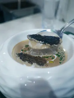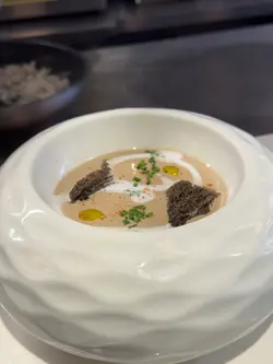 最近朋友生日 帶左佢去中環Daap慶生🎉🎉餐廳座位以吧枱為主 可以欣賞主廚準備食物而且餐廳食物款式特別 創新 擺盤又精緻吸睛當日朋友食完都覺得好滿意\ 🌰烤栗子湯配香煎羊肚菌 /個湯飲落好香滑 有好濃既栗子甜味 🌰🌰而又帶有堅果香氣 飲完非常暖胃湯裏面嘅羊肚菌🍄🟫 事先香煎過🔥 咬落去外皮有少少微脆 入面依然保持到菌類特有嘅韌勁同彈牙口感非常好 而且羊肚菌本身就好索汁將成碗栗子湯嘅精華全部吸收令味道同層次更加豐富🆙🆙🆙\ 🦪 辣菜脯日本蠔仔肉鬆意大利飯 /飯身煮得好creamy 日本蠔仔細細粒但非常鮮味最特別係入面嘅辣菜脯 鹹鹹地又有少少辣食落去口感好豐富 非常有驚喜 😋😋\ 🐮澳洲穀飼和牛腱扒配豆豉牛油汁/牛腱扒厚身 煮得啱啱好 食落好淋 最特別係佢個醬汁 估唔到豆豉同牛油可以咁夾 鹹香得嚟又好惹味 新奇但又好食嘅配搭🤩🤩***Daap菜式有創意 將熟悉既本地味道 好似菜脯同豆豉 融入西餐入面 而且效果出奇地好 食完更有高級既滿足感 值得一試…查看更多