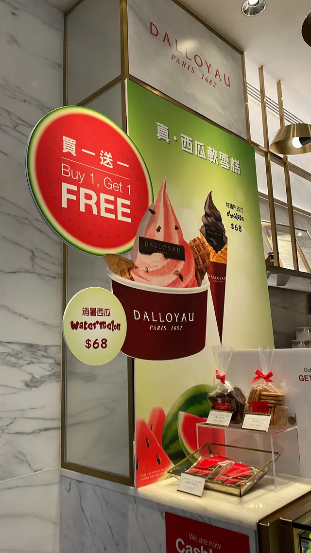呢幾日天氣勁熱啊!喺海港城行街, 經過Dalloyau見到雪糕做緊買一送一優惠, 即刻忍唔住買咗兩杯雪糕消暑.之前見到依間店都係賣朱古力雪糕. 今次竟然見到”真·西瓜軟雪糕”,梗係要試吓啦.真·西瓜軟雪糕 (HK$68/2)真係有驚喜.雪糕真係有西瓜味, 清新又得意.甜度適中, 唔會太膩.仲有朱古力脆脆扮西瓜籽, 增添咗口感層次, 幾有創意!不過講到消暑, 我始終覺得食真西瓜可能更爽.特濃朱古力軟雪糕(HK$68/2)另外揀咗特濃朱古力雪糕.朱古力味濃郁, 唔想試新嘢揀佢就穩陣啦.真·西瓜軟雪糕…查看更多