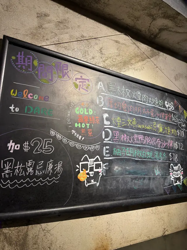 Dare (西環) 網址: https://s.openrice.com/QrbS0IXK900 地址: 香港西環西營盤水街5號地下1號舖 電話: +852 68025903
