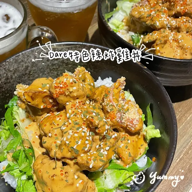 Dare係間價錢親民嘅西日菜系小店,由大學開始已經幫襯過好多次😋佢有好多款菜式,有Pasta、Burger、各種丼飯,但每次黎我都會忍唔住叫返同一樣野—就係✨Dare特色炸雞丼✨究竟有咩咁吸引呢?-🌟Dare特色辣炸雞丼 ($68)🌟唐揚雞粒芝士黑咖哩丼 (Special menu)-🐻comment:炸雞丼有6-7舊炸雞,皮唔會炸到好厚,而且其實唔太辣(連食譚仔10小嘅人都覺得唔辣)🤣丼飯面頭仲有一堆沙律生菜,加上沙律汁(好似千島醬),非常好送飯😛整體份量好充足,女仔食要少飯先得呀~Dare入面座位唔算多,閒日lunch hour都會好多學生黎食,所以要預排一陣隊~有來西環的話推薦過黎試下😋…查看更多