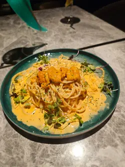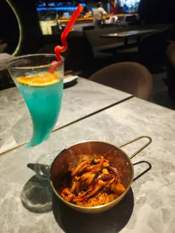 等主菜上枱前,先黎一份醬爆魷魚墊肚,啖啖爽口,squid fan大滿足。配埋杯 藍色海灣 Blue Cancun,靚仔主理人即場調酒,手勢勁型❤️,Vodka加橙汁菠蘿汁,甜甜地又清新,色水夢幻,打卡一流,飲落仲人工味呀!主菜叫咗兩款,一係 加拿大特濃海膽意粉 ,限量供應,超多海膽,意粉彈牙,即叫即煮,熱辣辣上枱,啖啖鮮味,連碟底啲汁都無剩😂😋。另一款就係黑毛豬柳,皮脆肉嫩,切開見到粉紅色肉心,冇血水,仲有啲脂肪點綴,咬落去多汁又香,真係豬界精品。甜品方面,心太軟配雪糕,熱同凍撞埋一齊,口感勁正。生日嘅朋友記得提前講,可以寫碟添❤️埋單$977小貴,但真係好食好飲,地點又方便,啱晒慢慢嘆、慢慢Chill。…查看更多