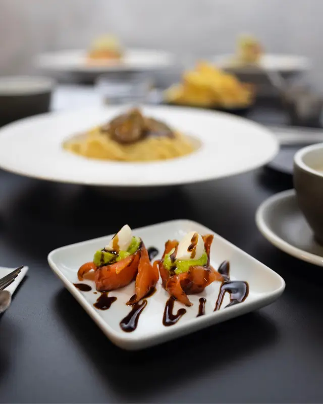 🍝🍽️☕️工廈cafe卷卷意粉✅韓式玫瑰醬意大利煙肉卷卷意粉 - $128終於試到而家好出名嘅卷卷意粉!意粉嘅份量唔算好多,可能因為卷卷意粉本身成本比較貴,但佢真係幾掛汁,口感會比較硬。講返個調味先,真係幾好味,酸酸甜甜但係又微辣,好惹味。煙肉亦都有煎香左,整體嚟講個配搭幾好。✅煙三文魚忌廉蒟蒻麵 -$118想低卡啲嘅話可以試吓呢款蒟蒻麵。呢度嘅蒟蒻麵係好似扁意粉咁,口感都幾得意,煙三文魚嘅份量都算比得多。除咗上面卷左花之外,裏面都有啲熟嘅三文魚,另外仲有一啲菇同埋洋蔥作配料。調味嚟講就比頭先個卷卷意粉淡。✅南瓜湯 + 青檸奇異果薄荷梳打 -$38其中一個set加咗$38轉套餐,可以揀餐湯或沙律加一杯飲品。我哋揀咗餐湯南瓜湯,呢個湯真係幾好飲,南瓜味好濃,而且好幼滑。至於個梳打都幾特別,唔會好酸,裏面有好多薄片嘅奇異果可以拎嚟食。✅ 提拉米蘇 -$58估唔到甜品都同樣都好出色,拎上枱嘅時候已經覺得好靚,咖啡味香濃,個cream好順滑,入邊嘅蛋糕比較濕,但整體嚟講口感味道都唔錯,係一間會encore嘅餐廳!…查看更多