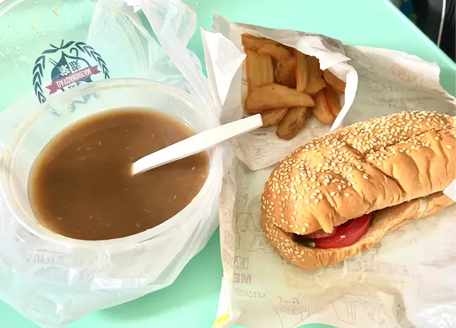 呢間餐廳咩料,相信黎到門口已經知,都唔使點解釋啦。餐廳主打糖水同小食,仲有套餐揀,價錢貼地。🐖女神豬扒包+🍟薯條+🧃烏龍茶+🥡炸燒賣叫左個套餐再加一份小食,即叫即製熱辣辣。豬扒包都幾大個,拎上手好厚身,豬扒醃得鹹香,質感軟腍唔鞋口,夾左生菜蕃茄很爽口,醬汁係沙律醬,個包仲塗左牛油,幾好食吖😋薯條係曲曲條,正!炸燒賣很香脆,不過個人都係鍾意蒸燒賣多啲,下次叫番蒸😝套餐包一盒紙包飲品,揀左烏龍茶。下午去完全無客…想食小食就黎支持下啦🥰查看更多