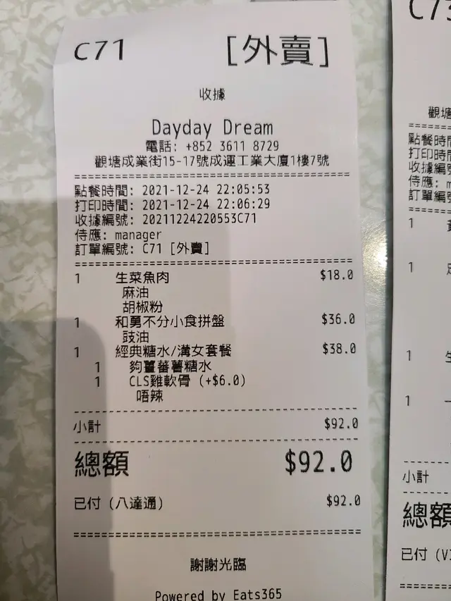 一直都好鍾意食daydaydream嘅芝麻糊同合桃糊,生磨夠濃超夠味,平時都係星期五夜晚先嚟買,因為平日早收嚟5切。咁呢幾個禮拜因為時間調動就星期五去5到買,但心思思又想食,今日星期四6點到有啲時間就特登行25分鐘過去買, 一碗芝麻糊同一碗合桃糊,今日閒日,師傅得一個,無為意星期五佢向5向到。芝麻糊一打開已經知道浠左,因為上面有成層水,搞完都係,平時係啲粉溝芝麻糊先會見到,食一啖比想像中更浠,5比我樓下嗰間小食店賣嘅15蚊碗粉溝好幾多,不過味道都係濃好多嘅。我5係好識野,但應該都係平日生磨嗰隻啩,不過就加左水咁,似係一溝二,就5值我行咁遠去買。希望店主見到可以改善一下品質控制,始終係工廠大廈入面嘅小本經營,一做得5好會留失好多舊客,如果成本上漲加翻少少價都OK, 但質量真係5可以慳!希望下次再去買會係平時食開嘅水準!thxx查看更多