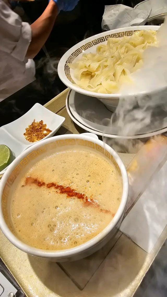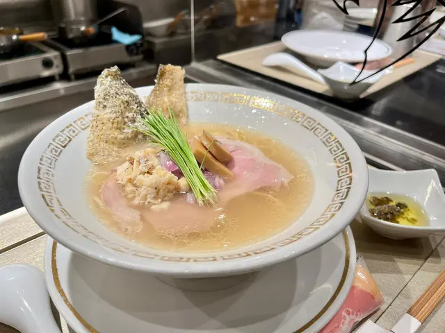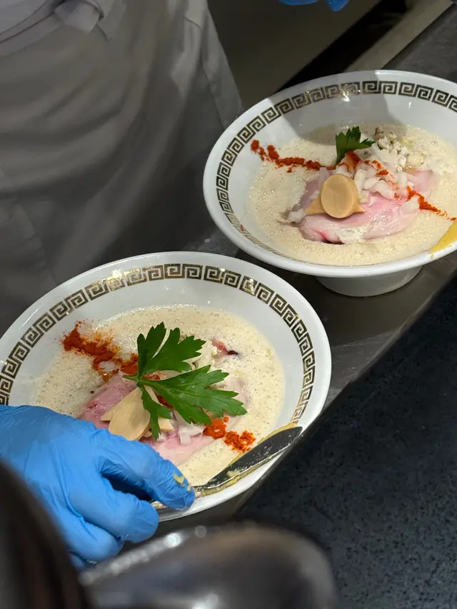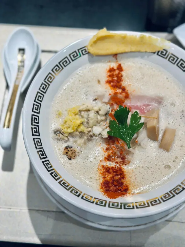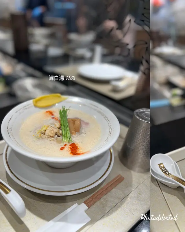 呢間位於斜路嘅低調日式拉麵小店,主打鯛魚湯底。店舖雖然細細,但環境乾淨企理,好有日本街頭拉麵小店嘅氛圍。侍應都好有禮貌,門口會先幫你按機落單,跟住就會帶你入座 ~○ 鯛 白 湯 // $138湯底用真鯛魚加上各種貝類足足熬煮 8 小時,真係濃郁到癲 ꒰,,꒪ ᐞ ꒪,,꒱第一啖飲落去,鮮甜鯛魚味即刻爆發,再慢慢滲出鹹香,層次感十足,完全唔腥 ꒰๑ ᷄ ω ᷅ ꒱店家特別提醒,要 1 分鐘內影完相,費事湯底凍咗。如果覺得湯頭太濃嘅話,可以加少少碗邊嘅柚子醬,中和濃度,味道又更加豐富 .ᐟ.ᐟ加埋鯛魚碎、洋蔥粒、七味粉一齊食,又係另一番風仲有配合店名切成 ○▽ 形狀嘅醃蘿蔔,可以清清味蕾○ 櫻 木 煙 燻 糖 芯 蛋 // $15採用日本產雞蛋以櫻木煙燻,充滿香氣 ( ꈍ ᴗ ꈍ )○ 炸 鯛 魚 皮 // $48清脆爽口,浸一浸湯再食,更顯鮮味。絕對係必點小食 (⁎⁍̴̛ ᴗ ⁍̴̛⁎)薄薄一片脆卜卜,鮮香又過癮。建議輕輕浸一浸湯再食,鮮味再提升咗幾倍 .ᐟ.ᐟ記住 𖤐 ˊ˗ 每日限量 120 碗,賣完就收舖,想食就記得早啲去排隊啦 ~ ꒰ ´ ꒳ ` ꒱真心推薦畀所有拉麵控 ♡ ♡ꕀ…查看更多