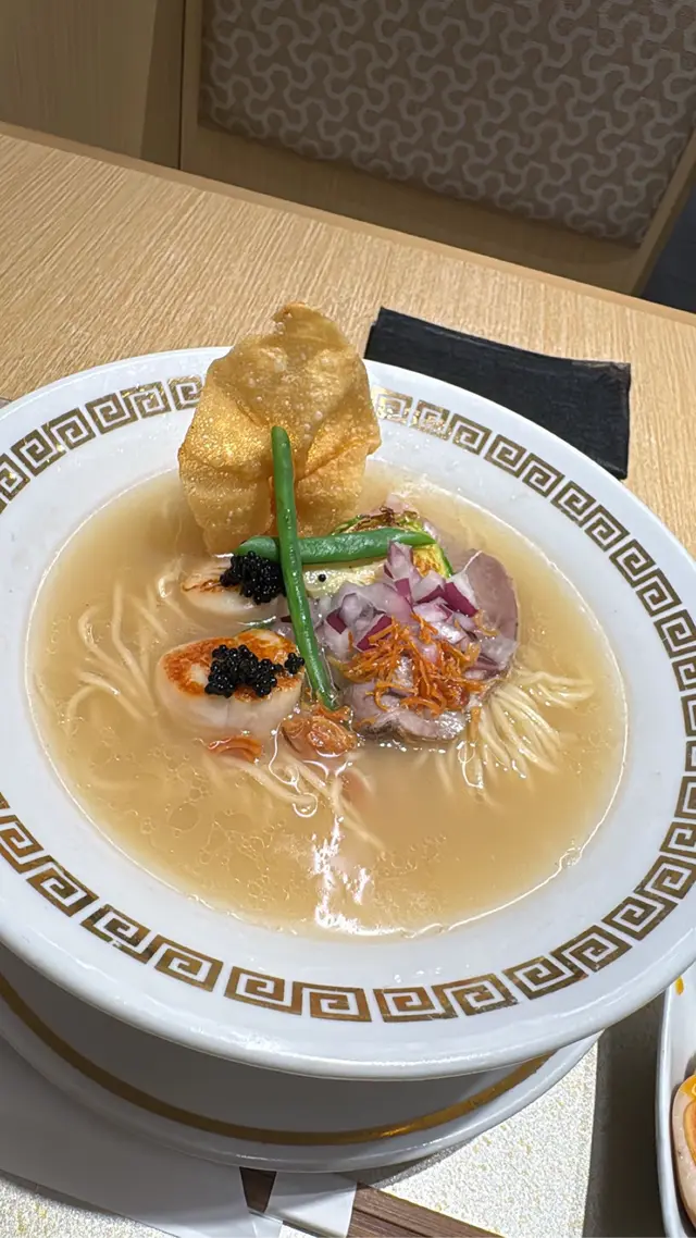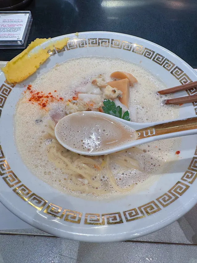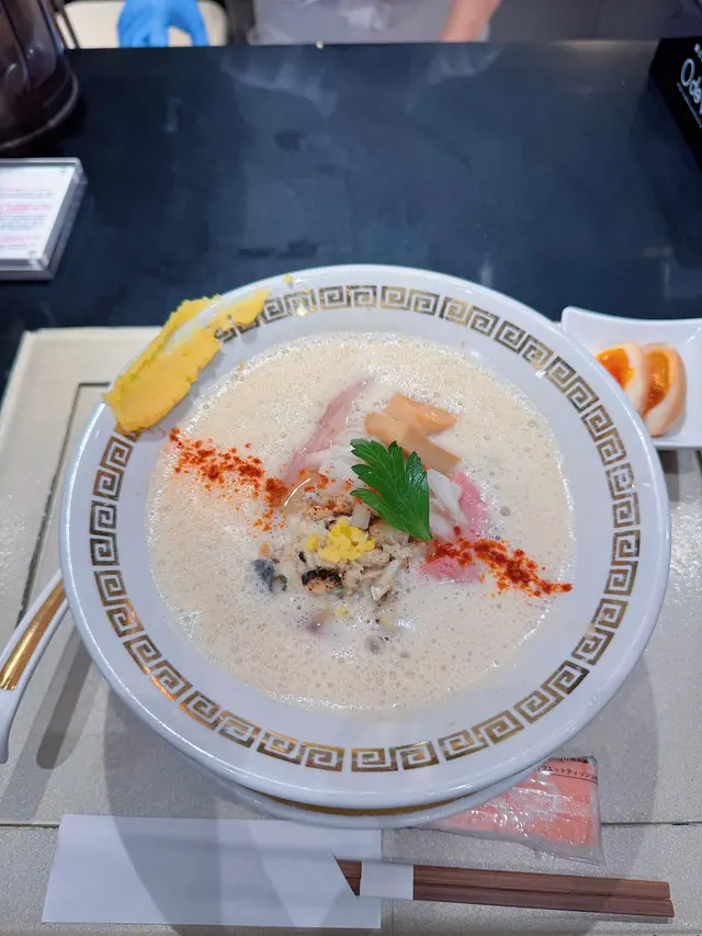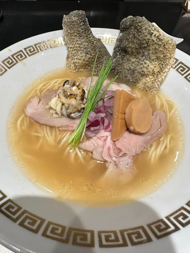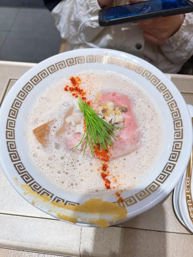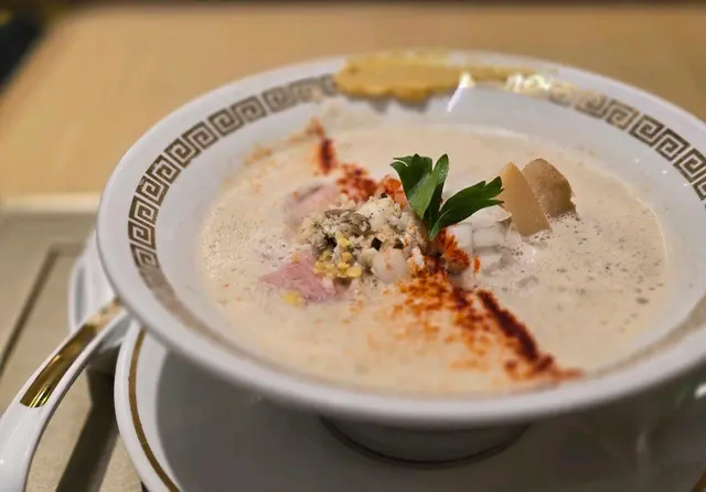 OdeV 鯛白湯らーめん Maru De Sankaku由大阪起家,主打鯛魚湯拉麵,濃而不膩。店員親切,細心為著淺色衫嘅客人提供圍巾,服務貼心鯛白湯拉麵鯛白湯湯底濃厚,滿載鯛魚同貝類嘅鮮香,入口滑順。叉燒雖薄但嫩滑,配上炭烤香嘅鯛魚碎,肉質結實好驚喜!中段可加柚子蓉,湯底即刻清新解膩,帶來另一層風味鯛清湯拉麵鯛清湯清而不淡,鯛魚鮮甜味突出,湯底順喉。配料有薄切叉燒、鯛魚碎同兩片炸得香脆嘅鯛魚皮,口感豐富。店員推介魚皮點牡蠣油,拉麵食到一半可加埋剩返嘅牡蠣油入湯底,蠔香即刻出晒嚟,同鯛白湯拉麵一樣都係一碗拉麵兩種食法!…查看更多